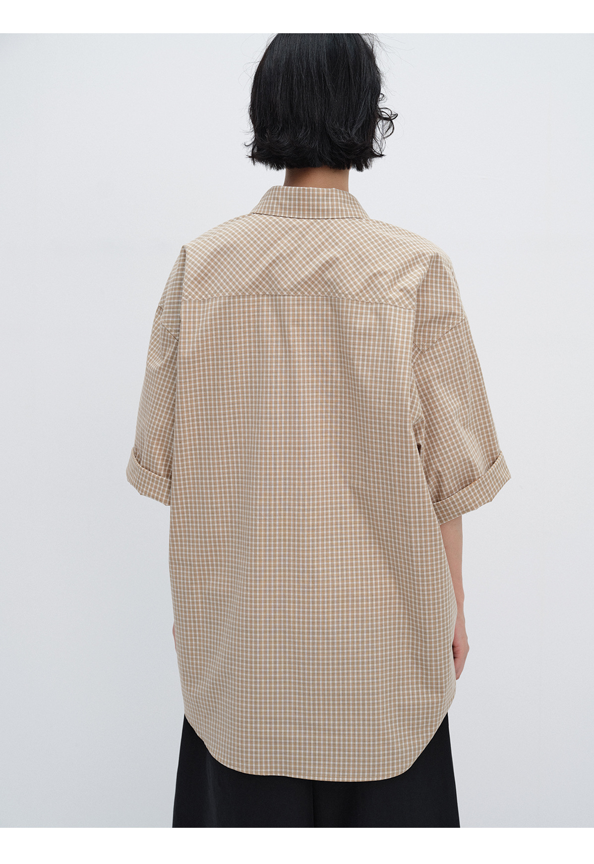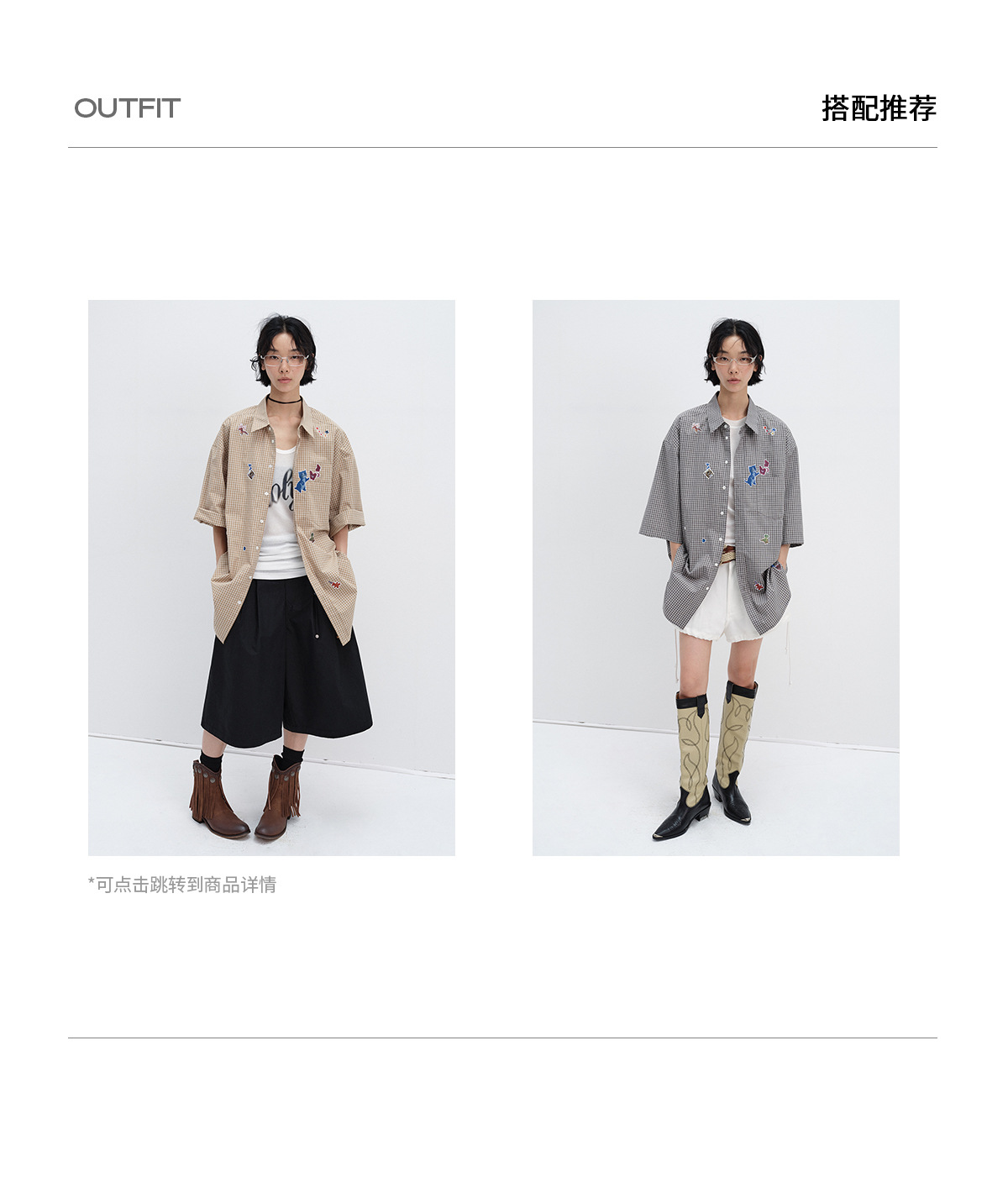 [시시] 신상품 순면 스티커 프린트 싱글 버튼 캐주얼 루즈핏 라펠 체크 셔츠 여성용 V8979스토어 가기