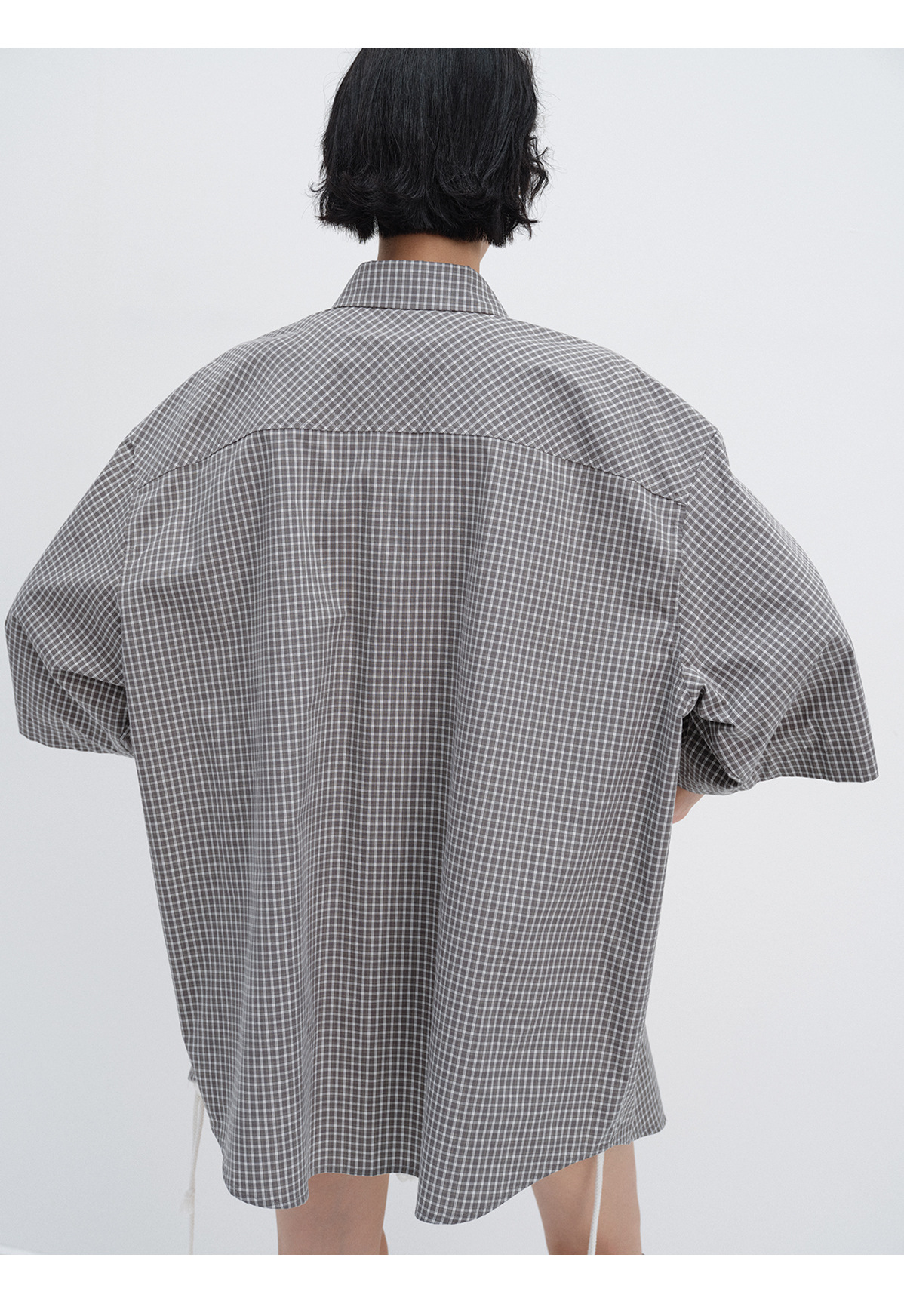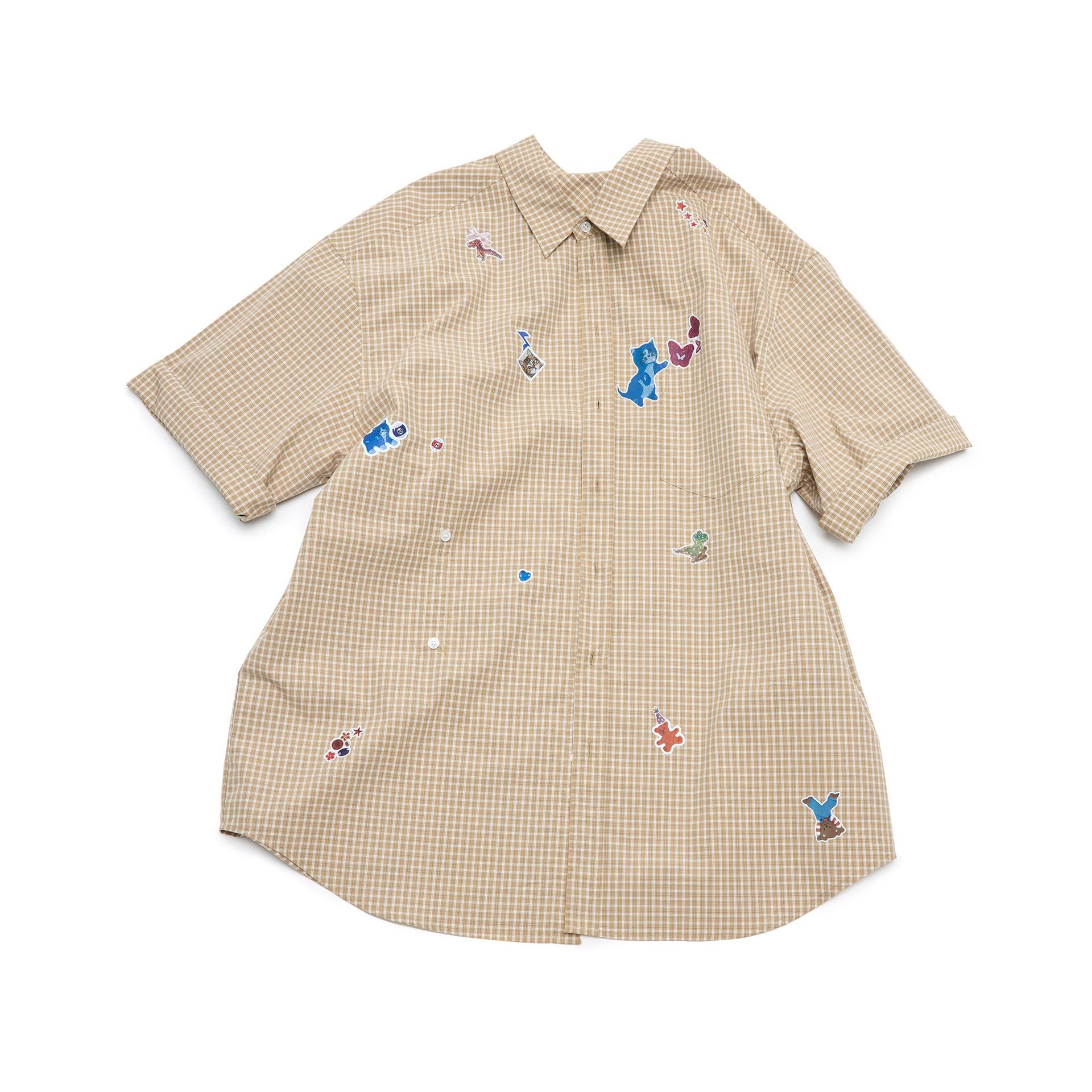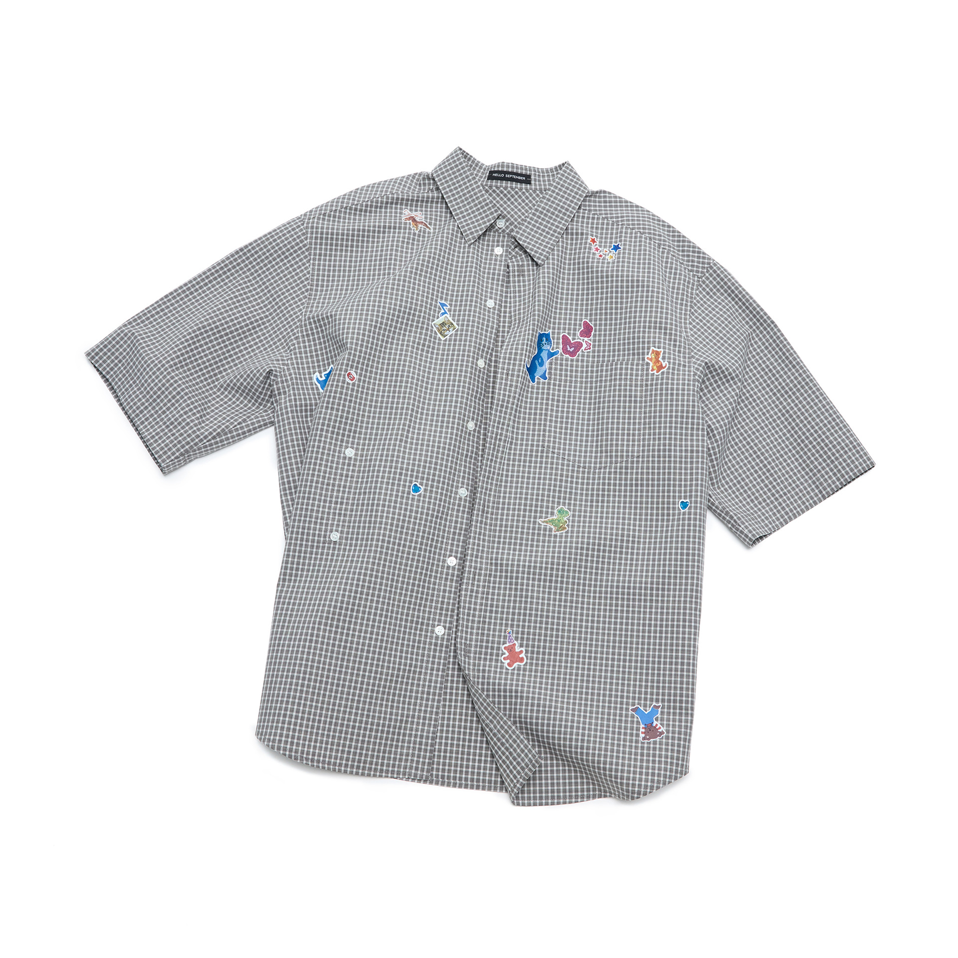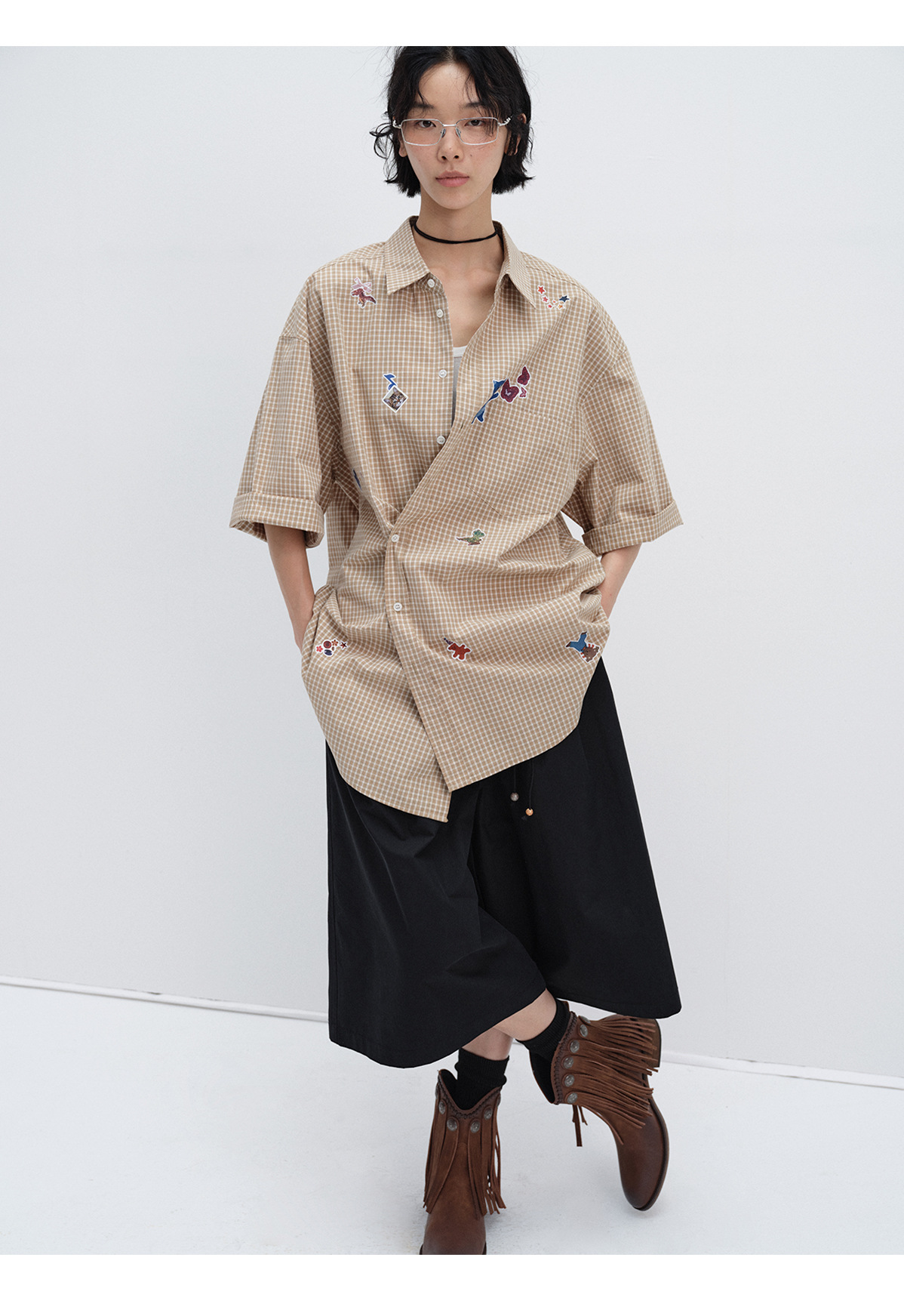 [시시] 신상품 순면 스티커 프린트 싱글 버튼 캐주얼 루즈핏 라펠 체크 셔츠 여성용 V8979