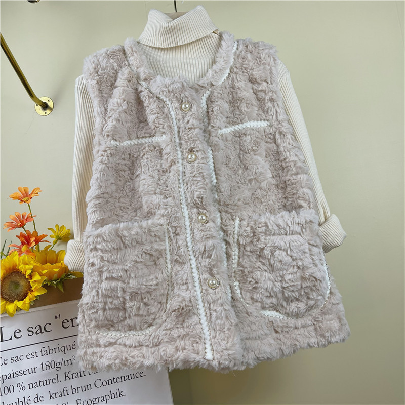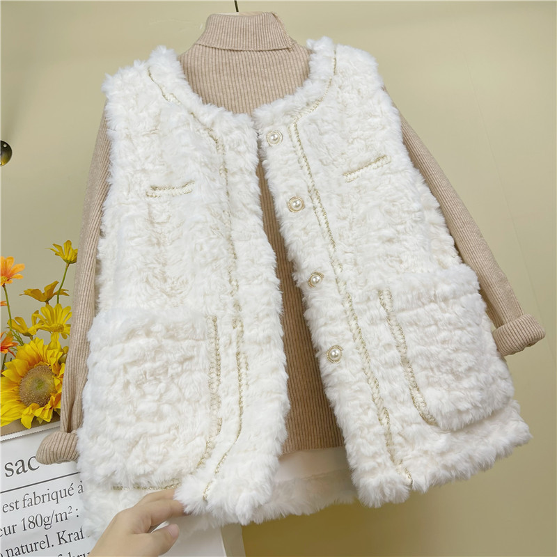 여성을위한 양털 조끼 2025 가을, 겨울 새로운 스타일 작은 향기 스타일 올인원 모조 토끼 모피 조끼 느슨한 조끼 재킷