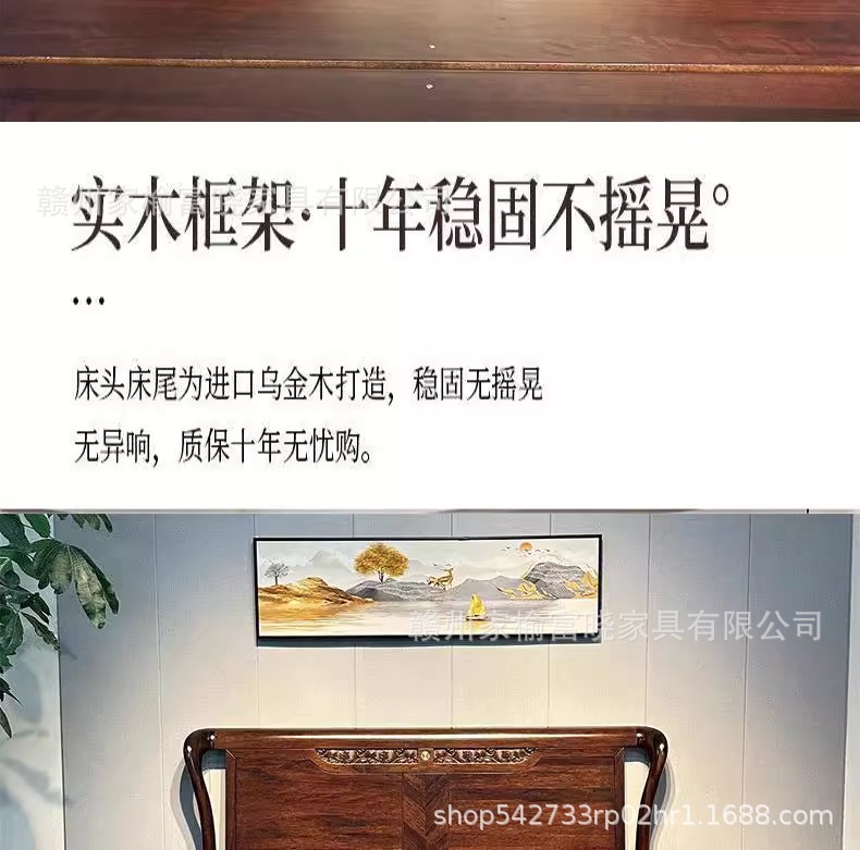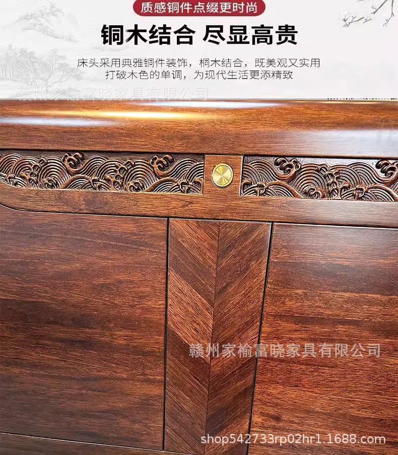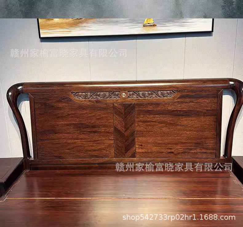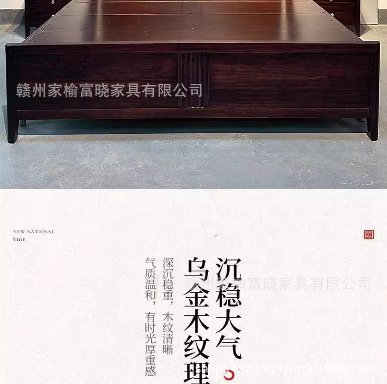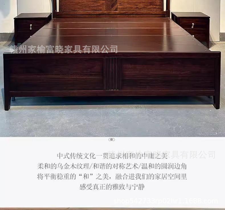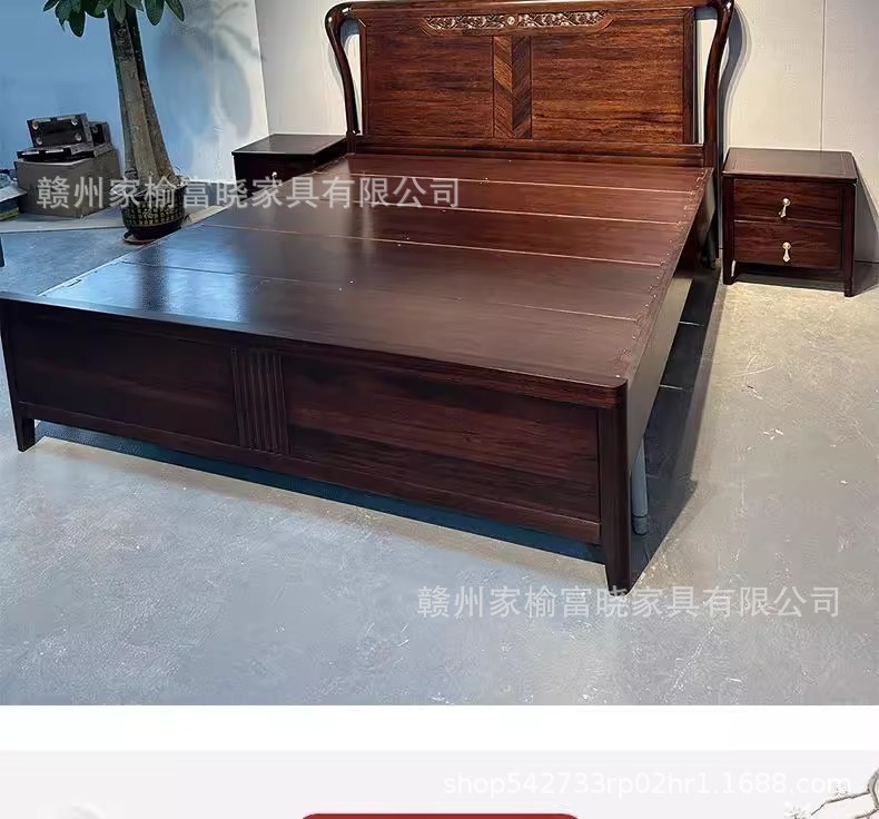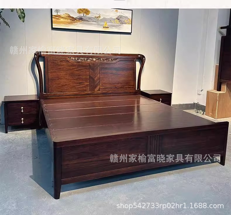 블랙 우드 나무 새로운 중국 스타일 단단한 나무 침대 더블 1.95m 패션 간단한 웨딩 침대 홈 침실스토어 가기