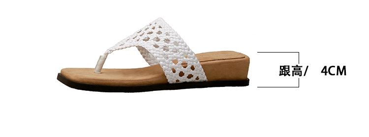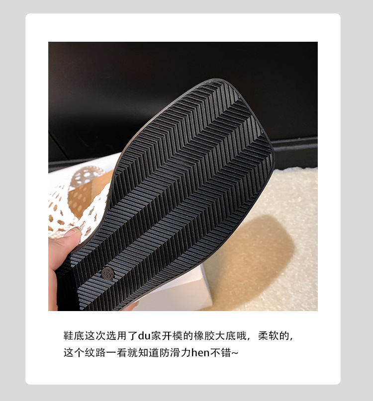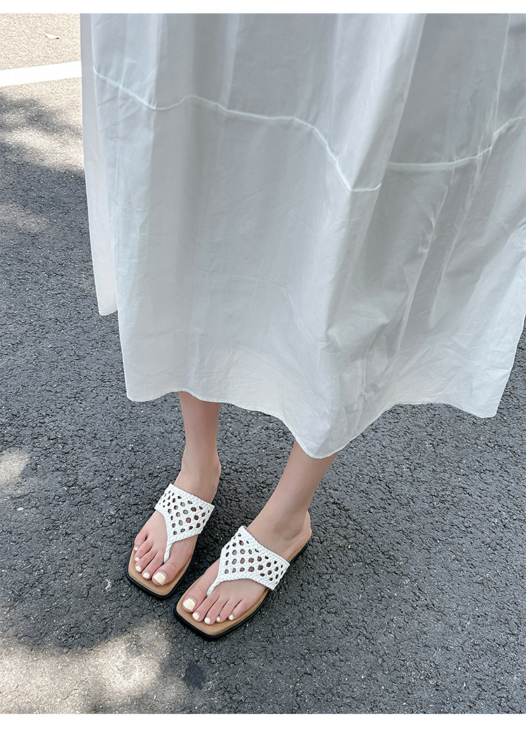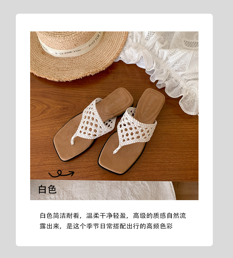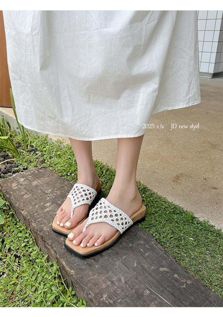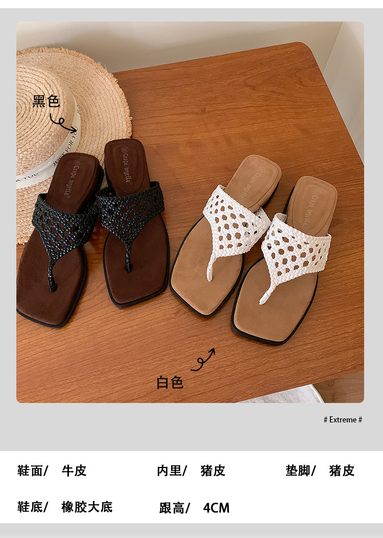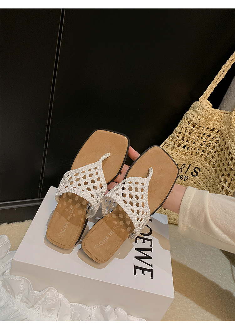 작은 사람~휴가 스타일 중공 뜨개질 플립플롭 여성용 스퀘어 토 샌들 여름 통기성 틈새 샌들