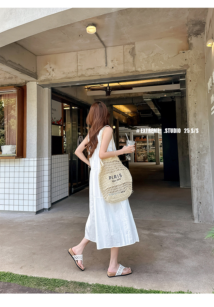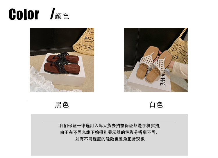 작은 사람~휴가 스타일 중공 뜨개질 플립플롭 여성용 스퀘어 토 샌들 여름 통기성 틈새 샌들스토어 가기