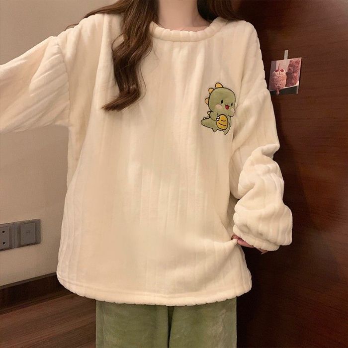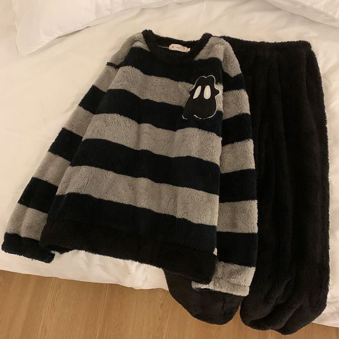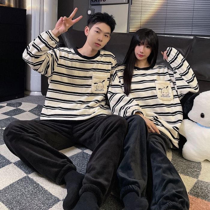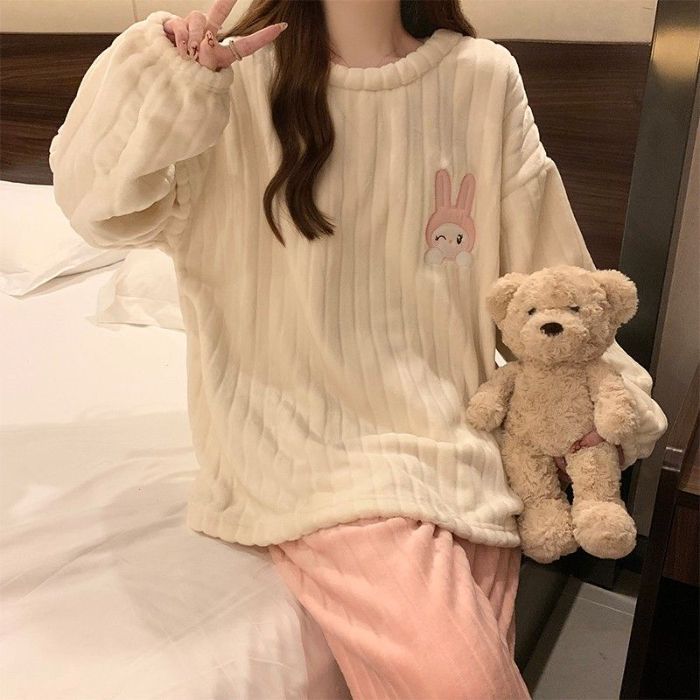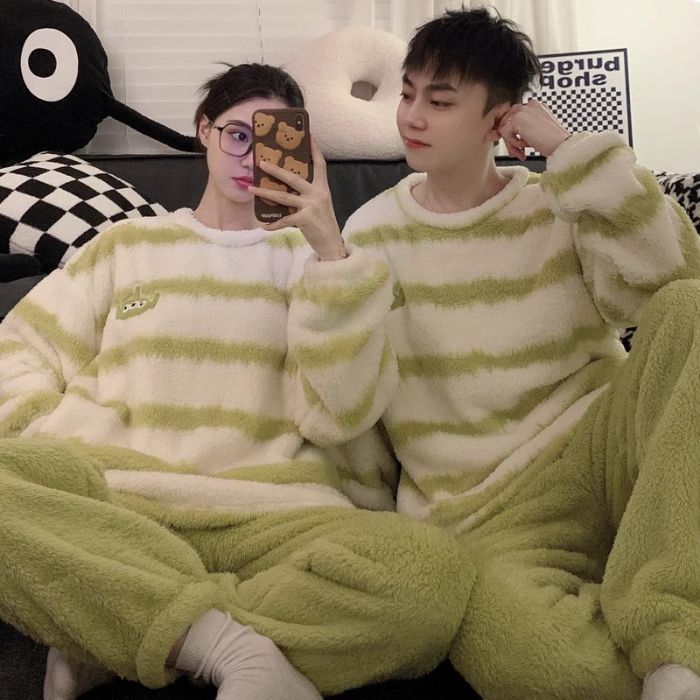 남성과 여성을 위한 공장 도매 산호 벨벳 커플 잠옷, 겨울 두꺼운 벨벳 라운드 넥 플란넬, 집 밖에서 착용 가능스토어 가기