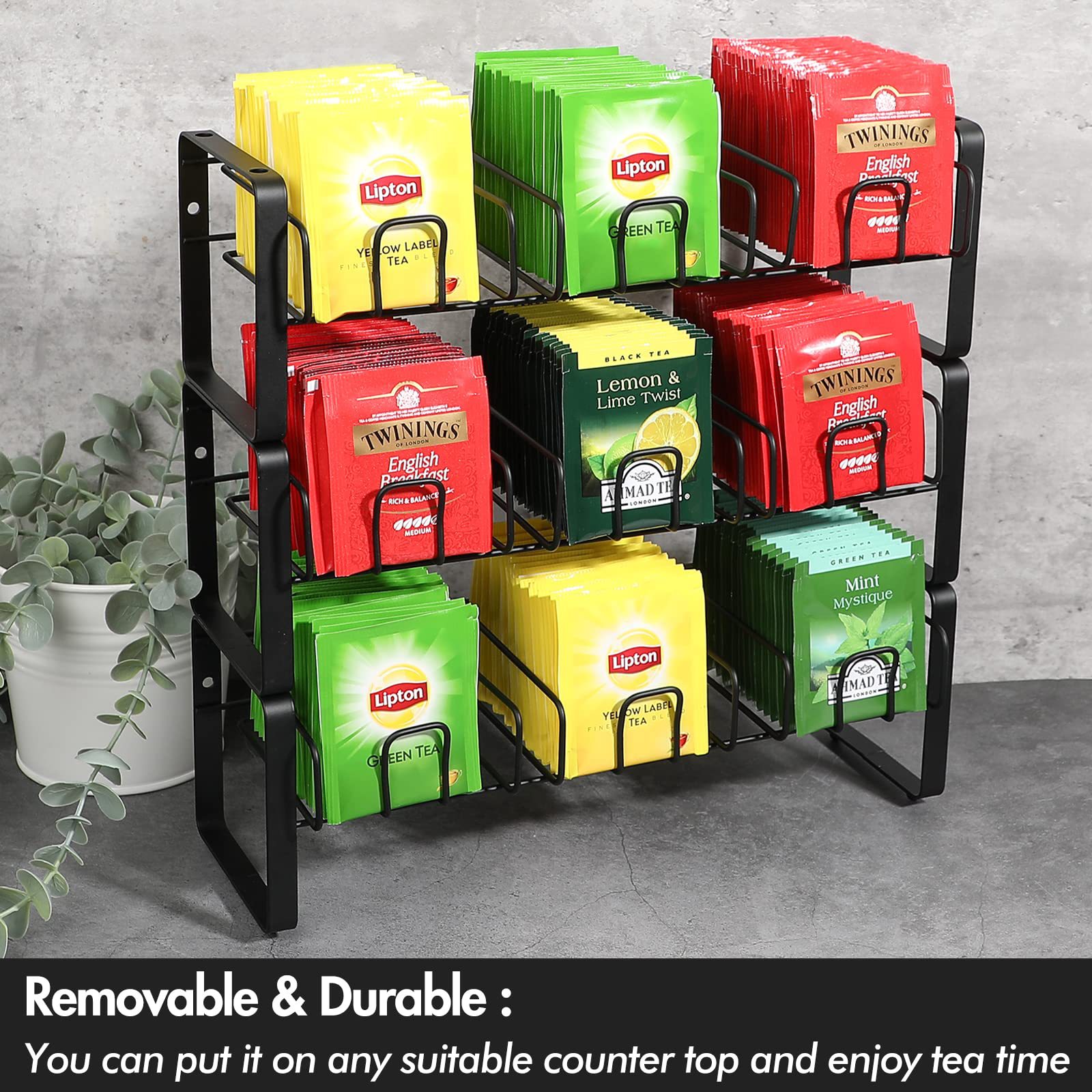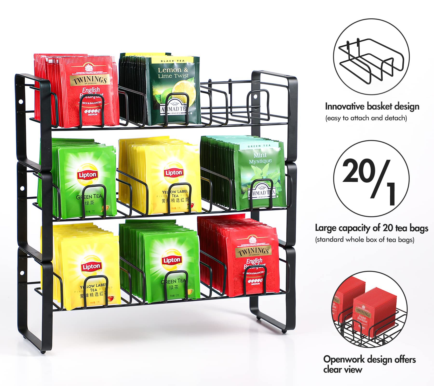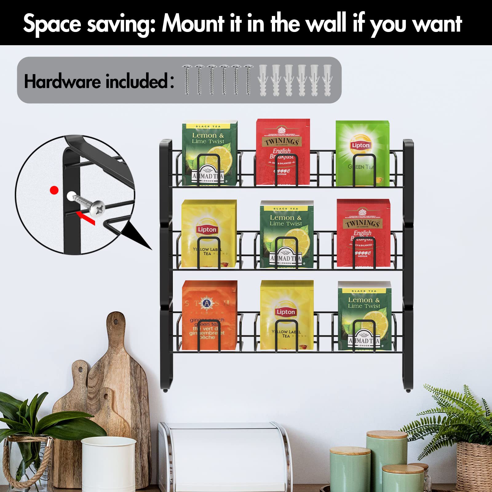 3층 조리대 대용량 티백 정리함 벽걸이형 커피 밀크티백 보관함 철제 백 티백 홀더
