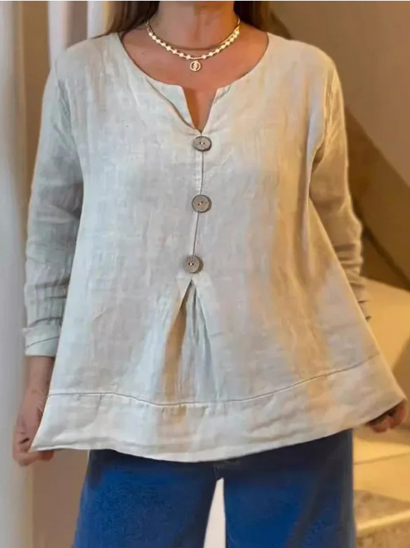 2025 여름 유럽과 미국 국경 간 Amazon AliExpress 여성 솔리드 컬러 캐주얼 코튼 린넨 v 넥 셔츠스토어 가기