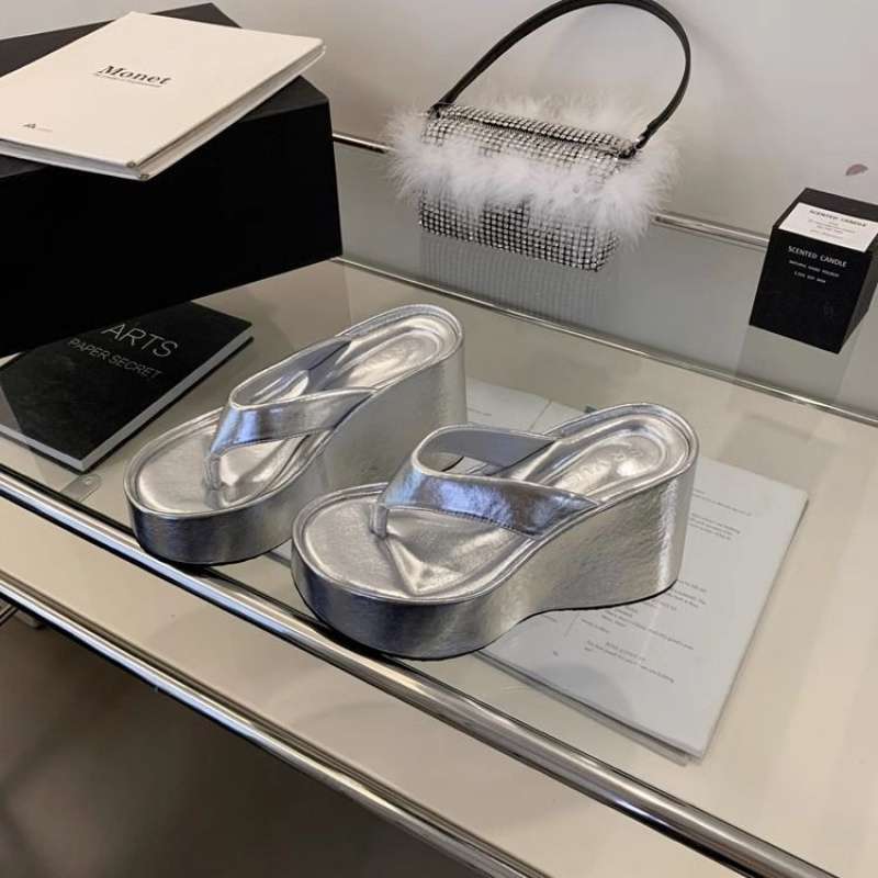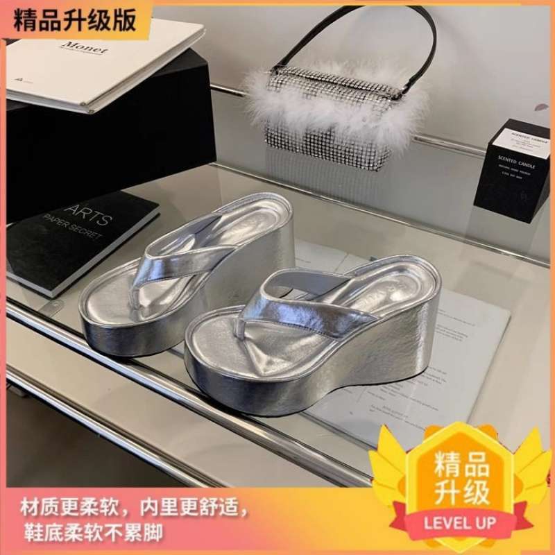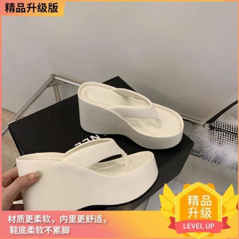 여름 아우터용 여성용 새로운 스타일의 플립플롭 웨지힐 두꺼운 밑창 샌들 여성용 하이힐 비치 플립플롭스토어 가기