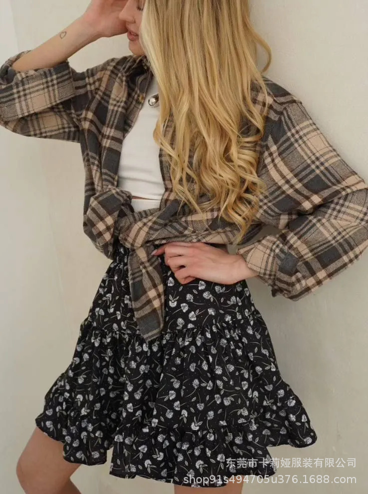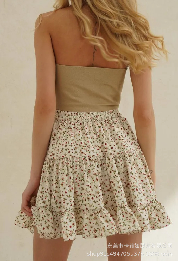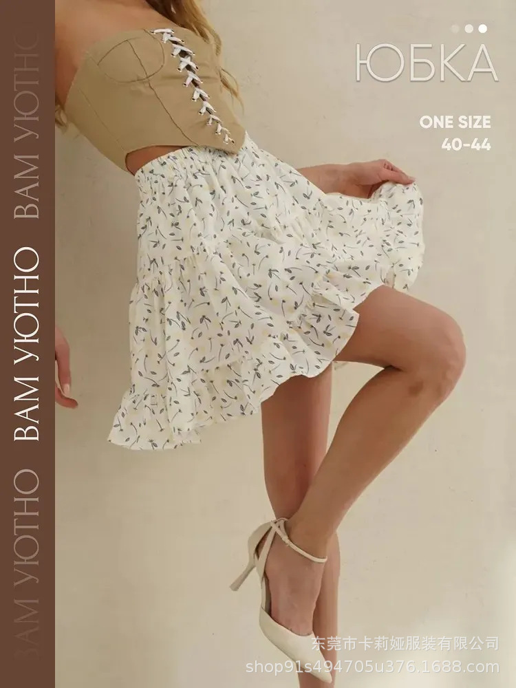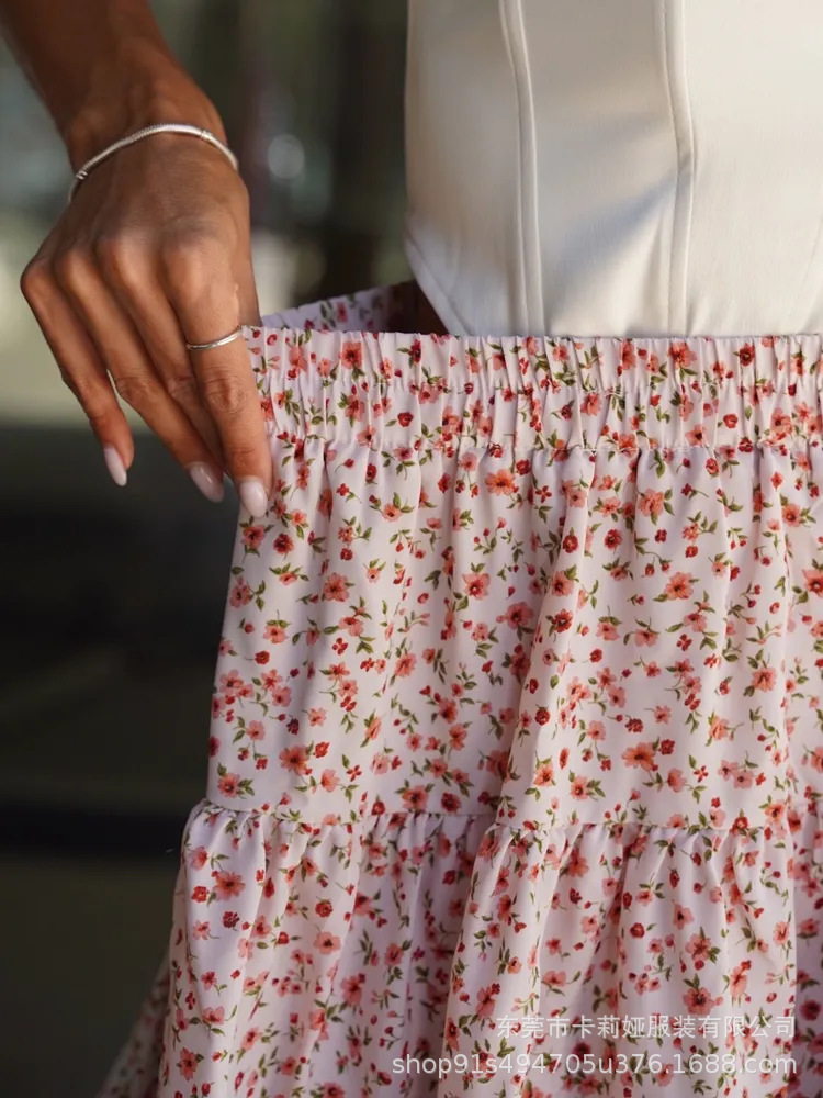 여성용 2025 꽃무늬 레이어드 러플 스커트 귀엽고 다재다능한 여름용 우아한 쉬폰 미니 스커트스토어 가기
