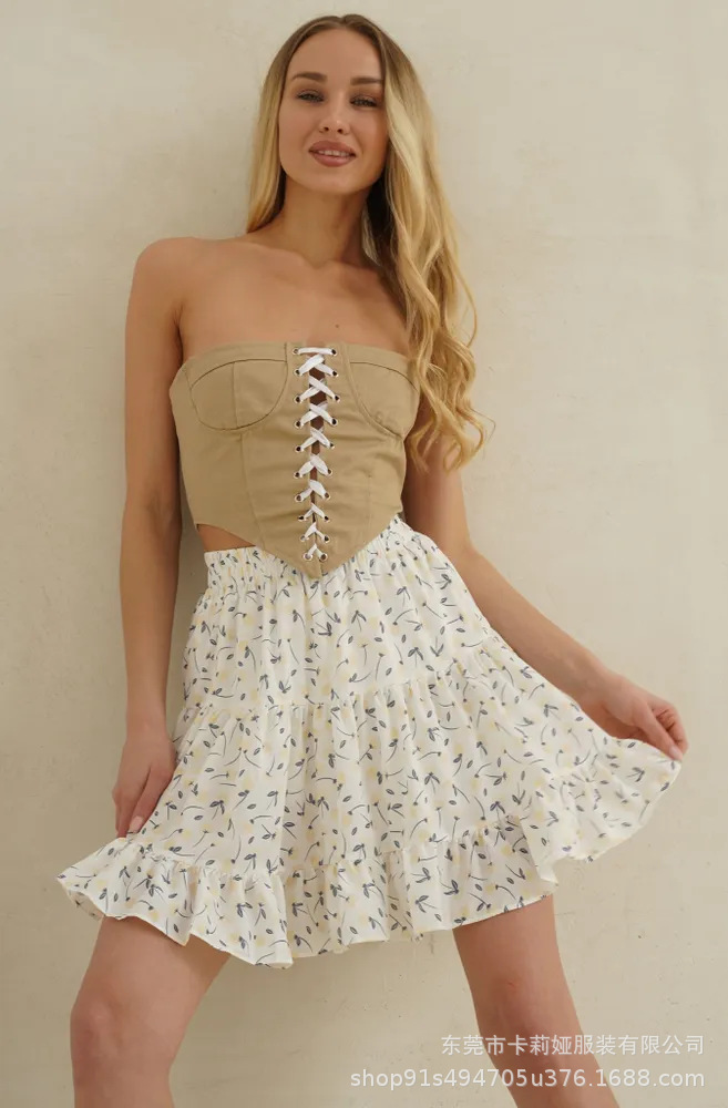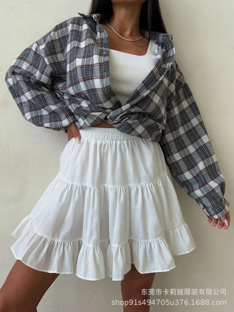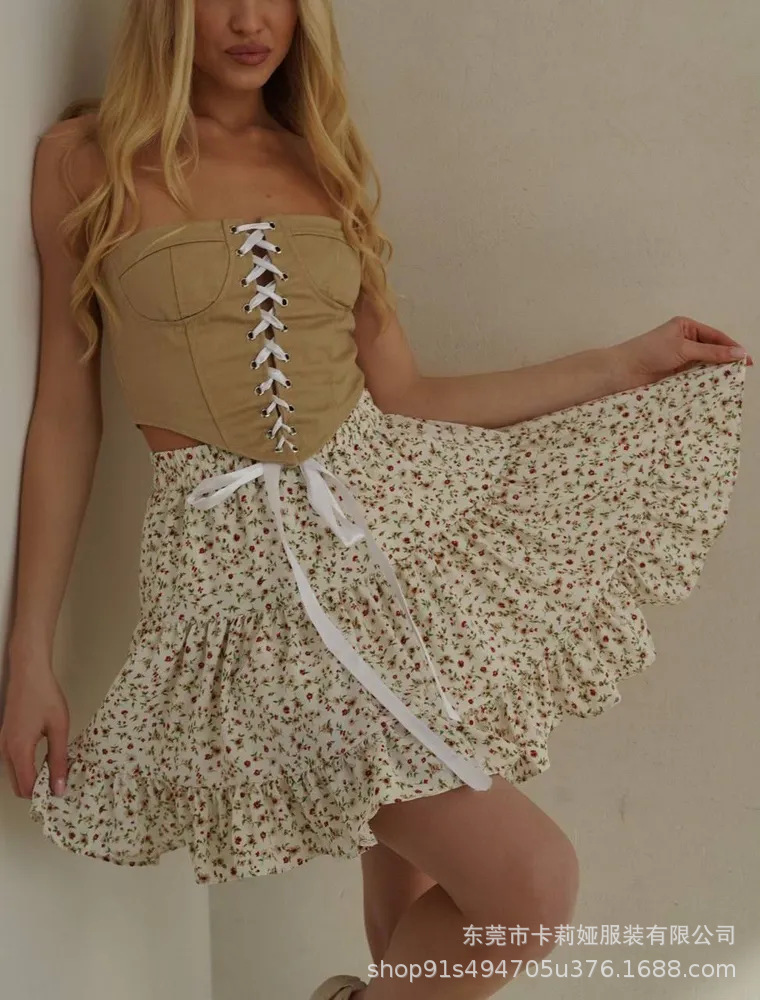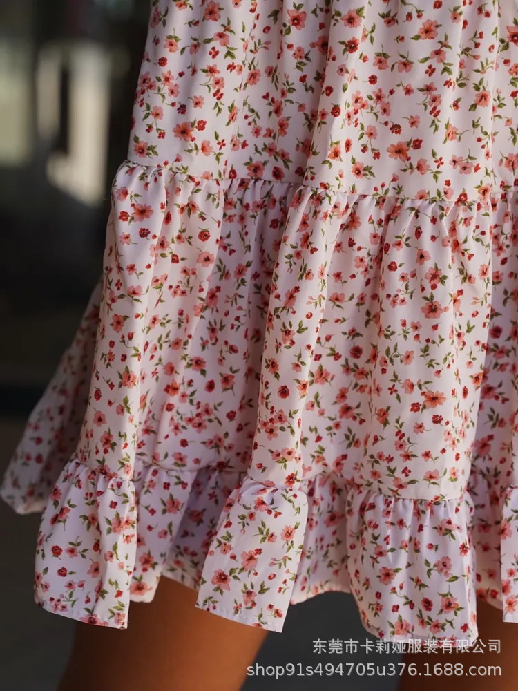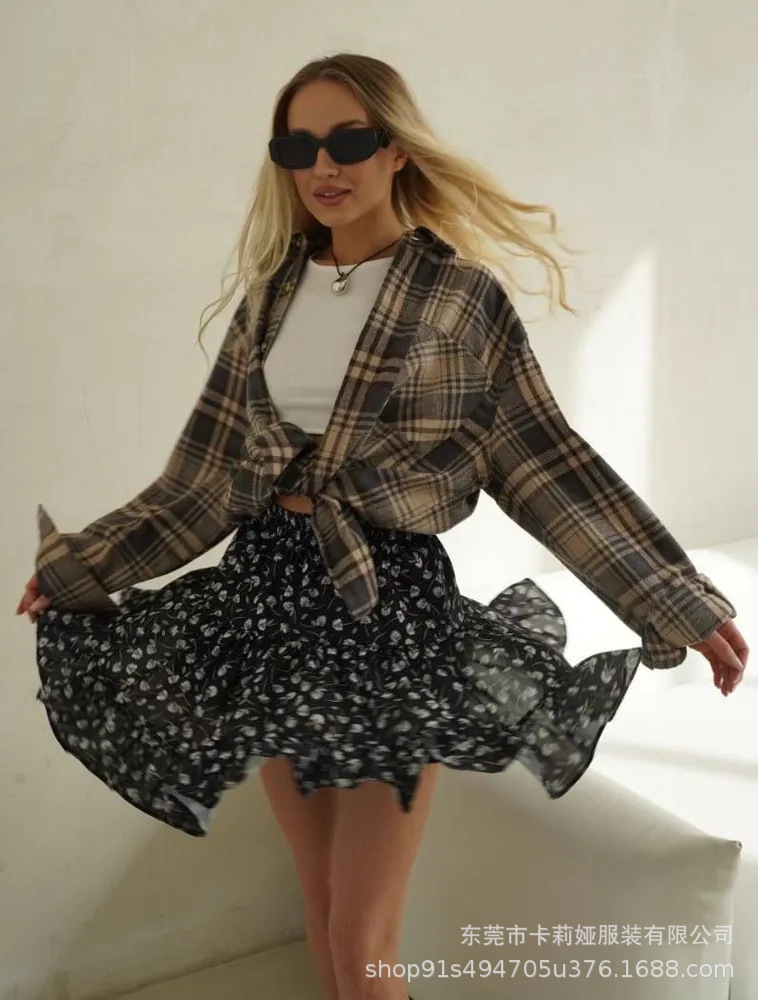 여성용 2025 꽃무늬 레이어드 러플 스커트 귀엽고 다재다능한 여름용 우아한 쉬폰 미니 스커트스토어 가기