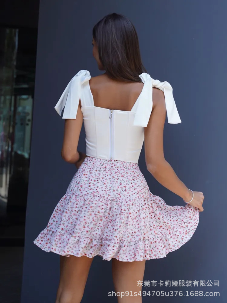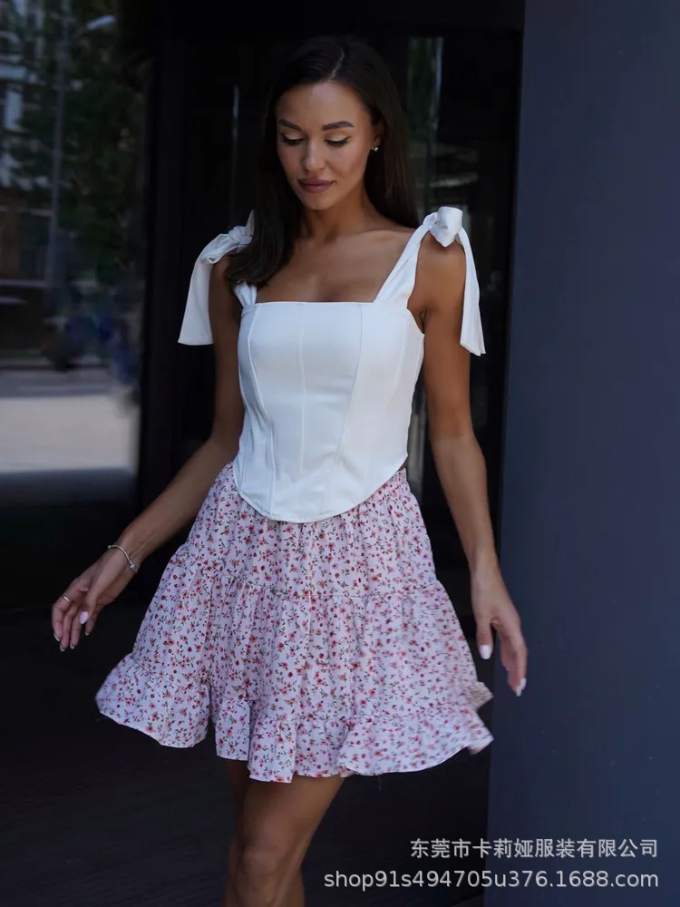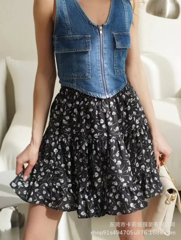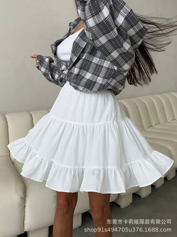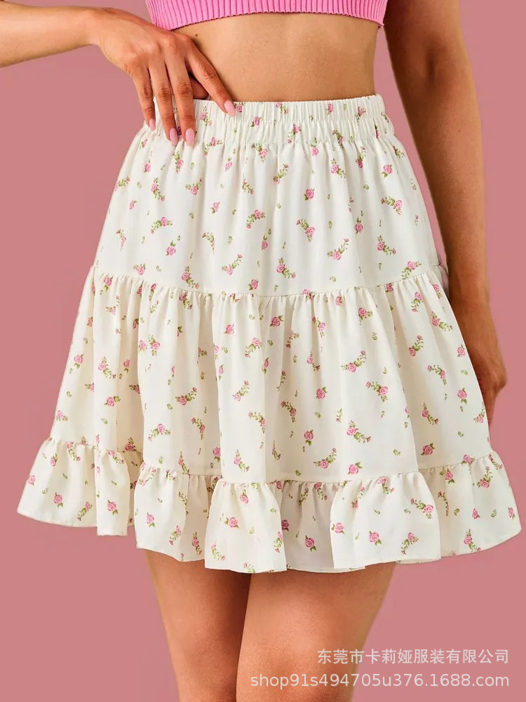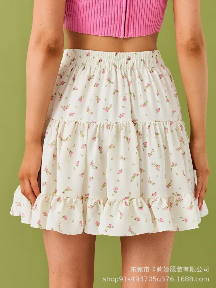 여성용 2025 꽃무늬 레이어드 러플 스커트 귀엽고 다재다능한 여름용 우아한 쉬폰 미니 스커트