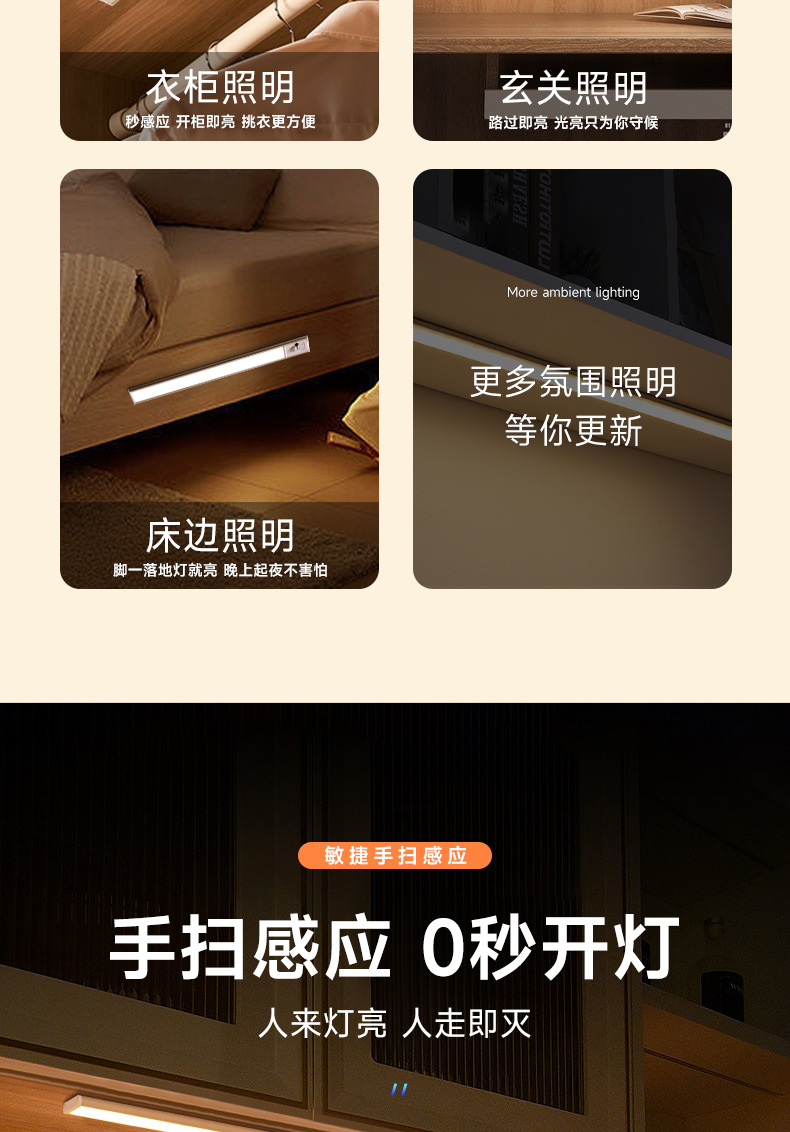 충전식 인체 유도 램프 자체 접착 유도 무선 배선이 필요없는 캐비닛 신발장 입구 와인 캐비닛 램프 LED 라이트 스트립스토어 가기