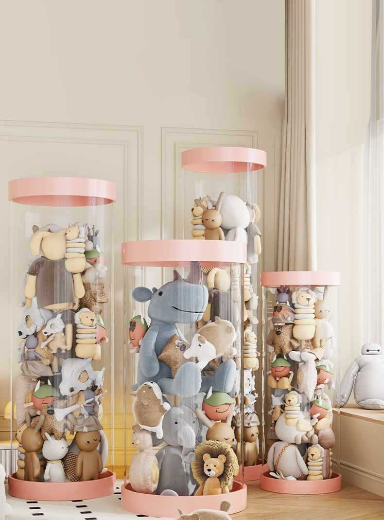장난감 보관 투명 배럴 어린이 디스플레이 인형 인형 확대 용량 포장 보관 배럴스토어 가기