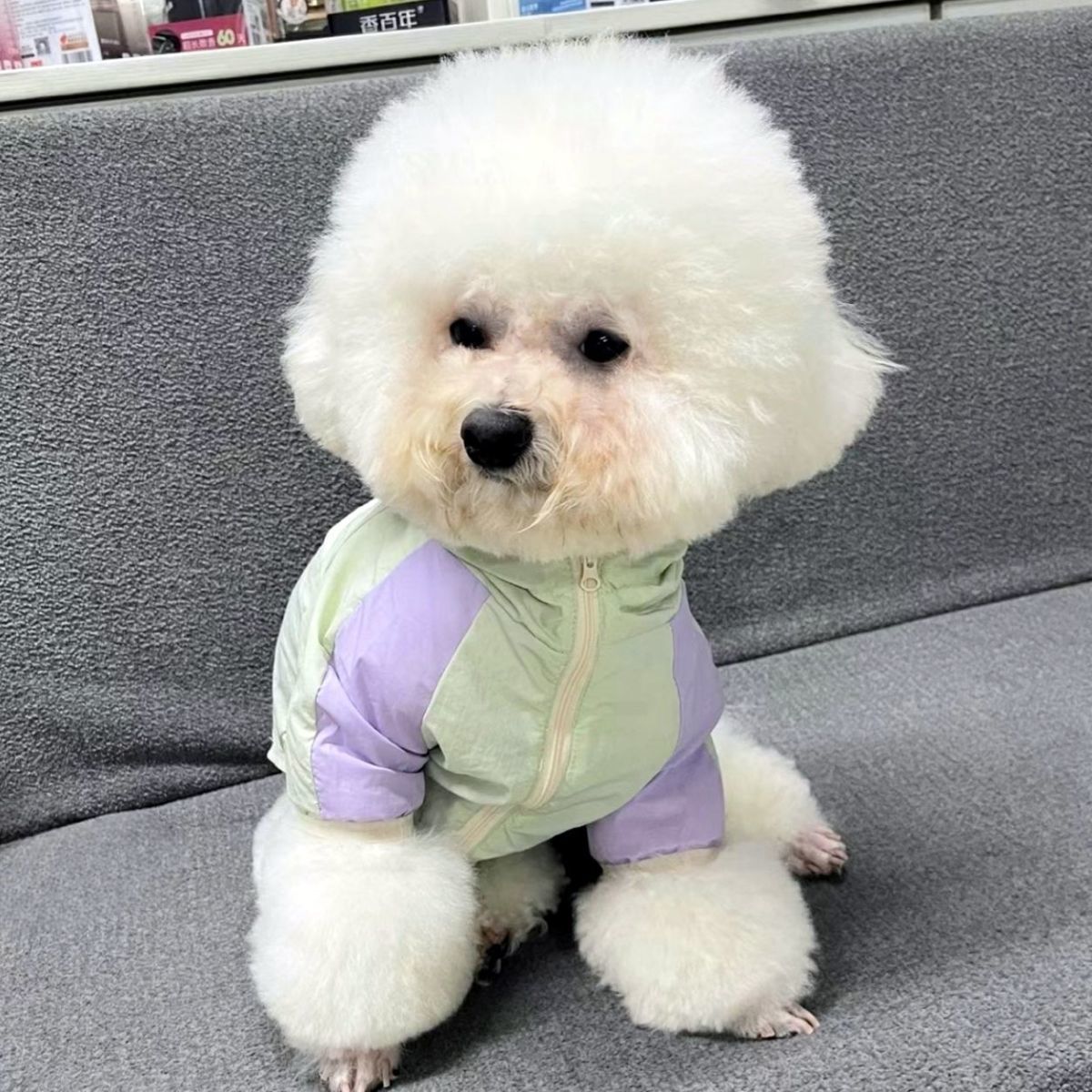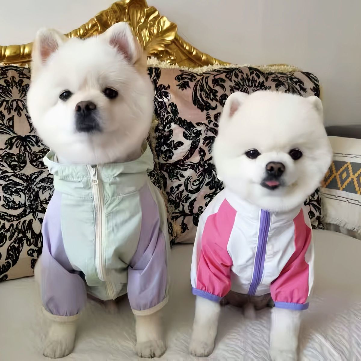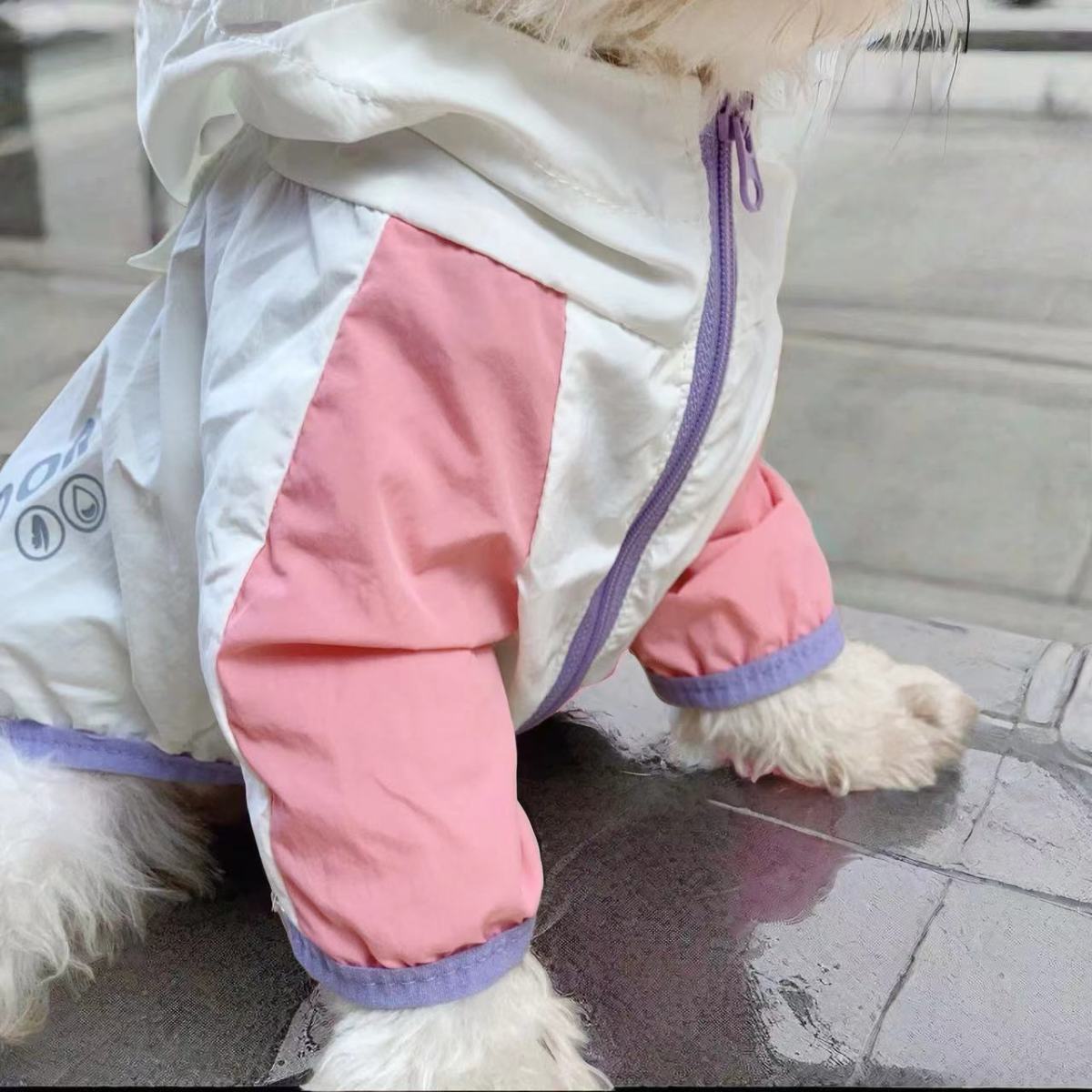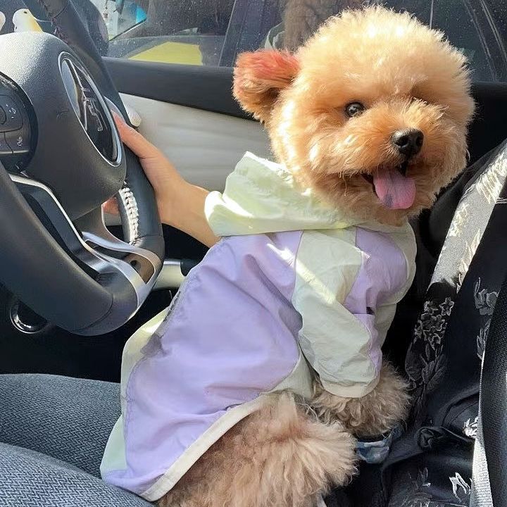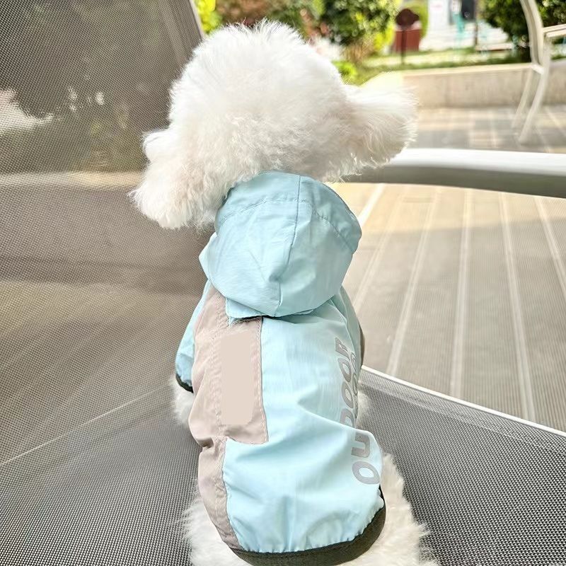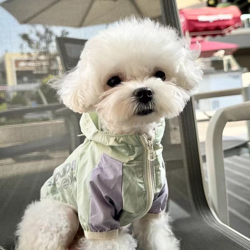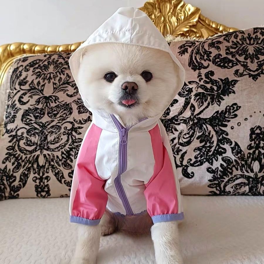 애완견 봄 여름 얇은 방수 및 자외선 차단제 양산 및 비 겸용 투피스 후드 테디 비숑 슈나우저 자외선 차단 의류스토어 가기