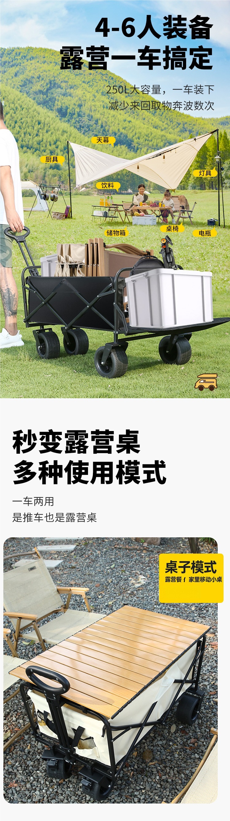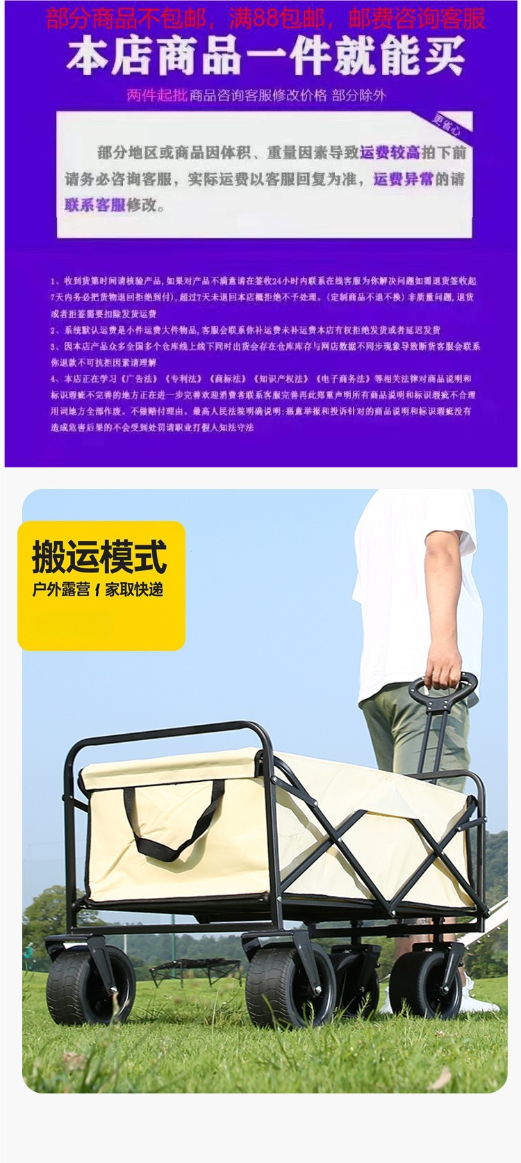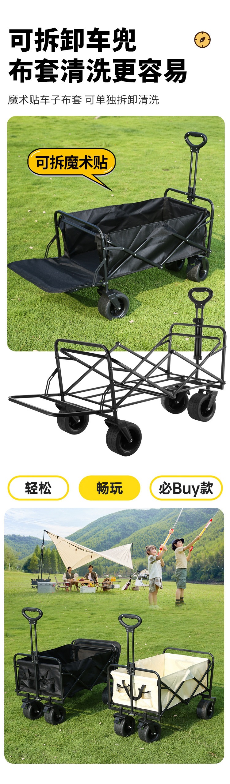 캠핑 카트 캠프 트레일러 접이식 야외 여행 쇼핑 핸드 푸시 피크닉 쇼핑 학생 이동 트롤리