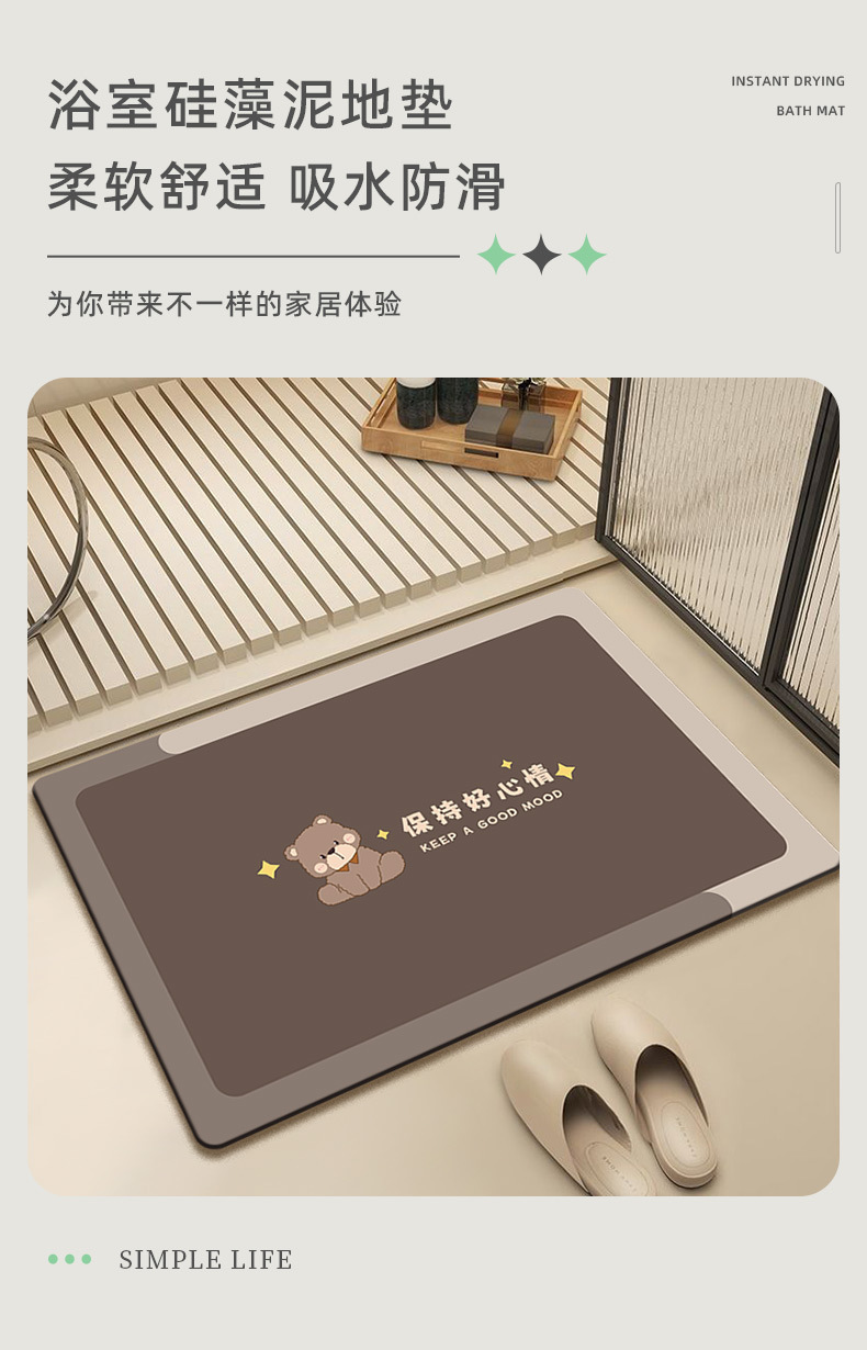 욕실 바닥 매트, 욕실 흡수성 속건성 발 매트, 부드러운 규조토 진흙 화장실 문, 가정용 욕실 미끄럼 방지 카펫