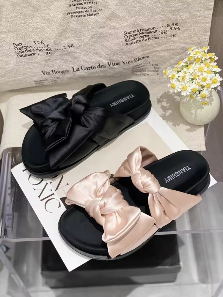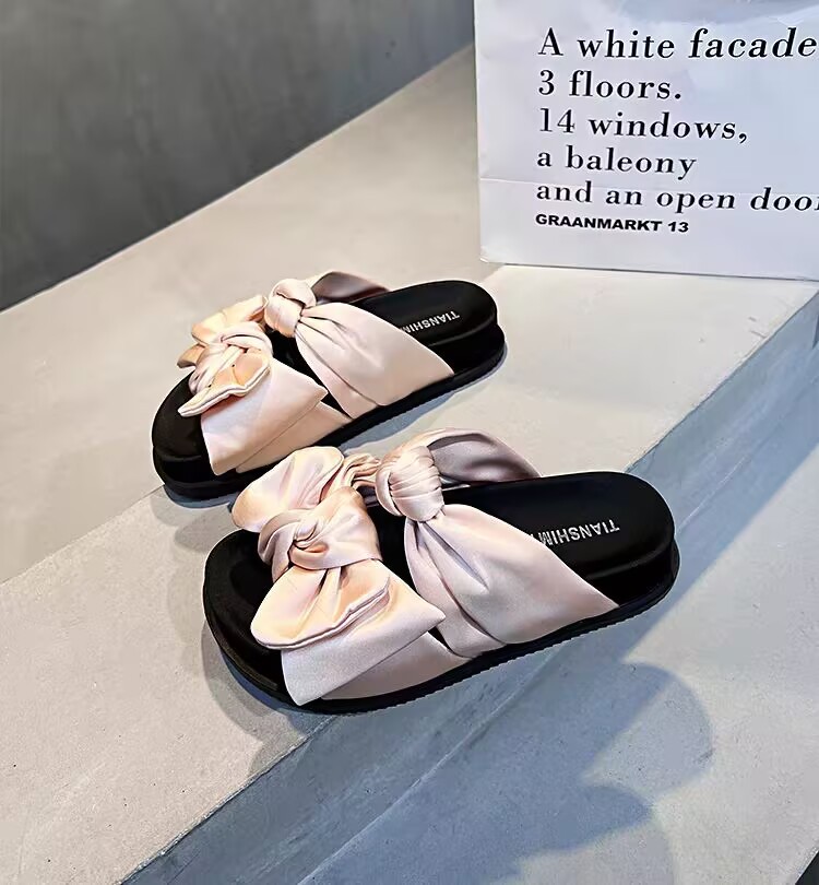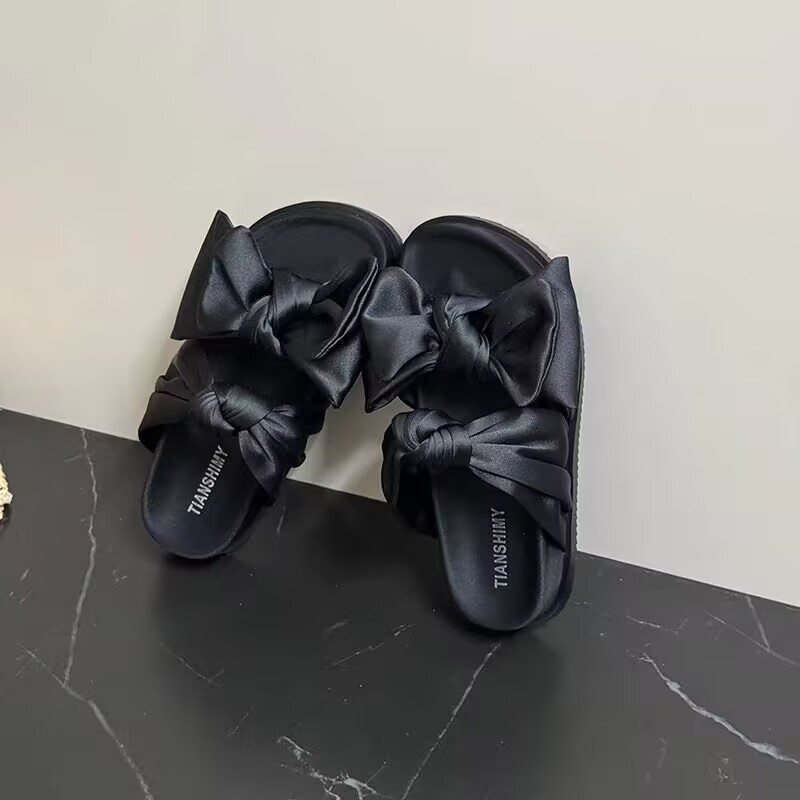 여성용 여름 아우터용 두꺼운 밑창 보우 슬리퍼 2025 새로운 스타일 중공 통기성 캐주얼 다용도 비치 샌들