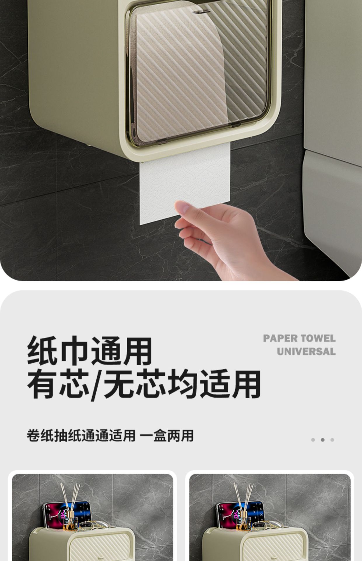 욕실 화장지 상자 벽걸이 형 티슈 상자 펀치없는 방수 화장지 상자 화장지 롤 Qin Xuan스토어 가기