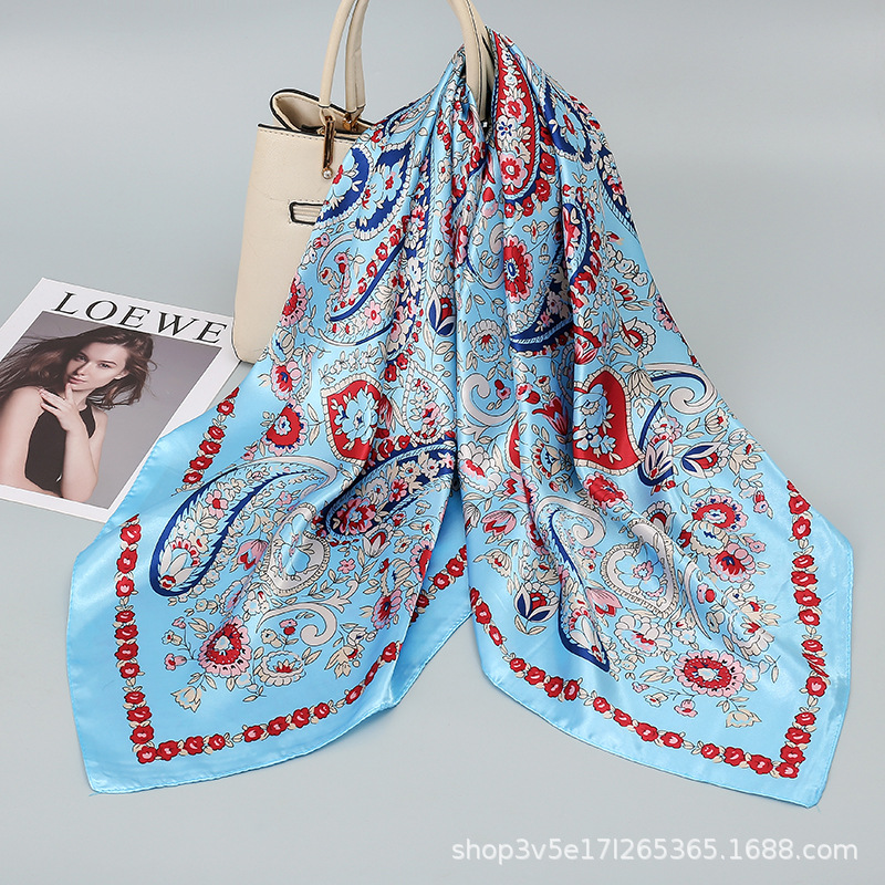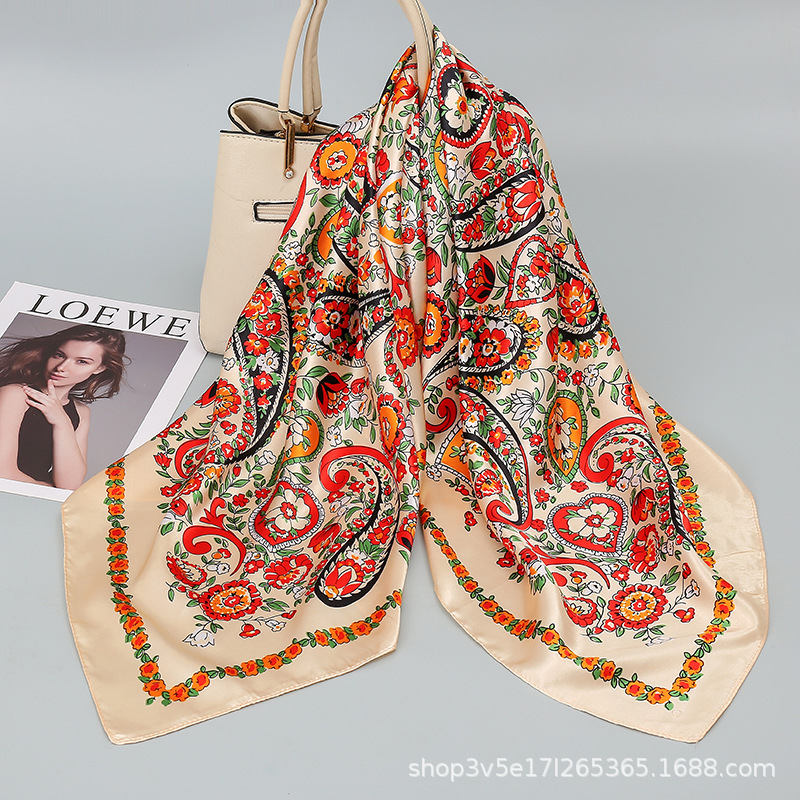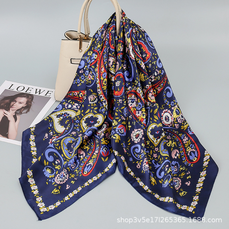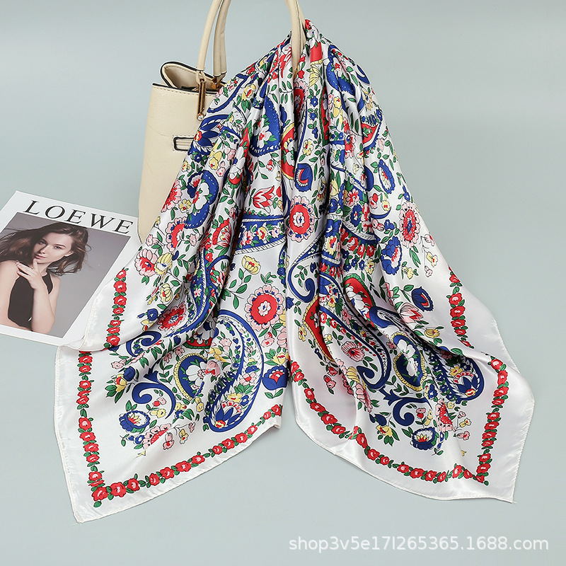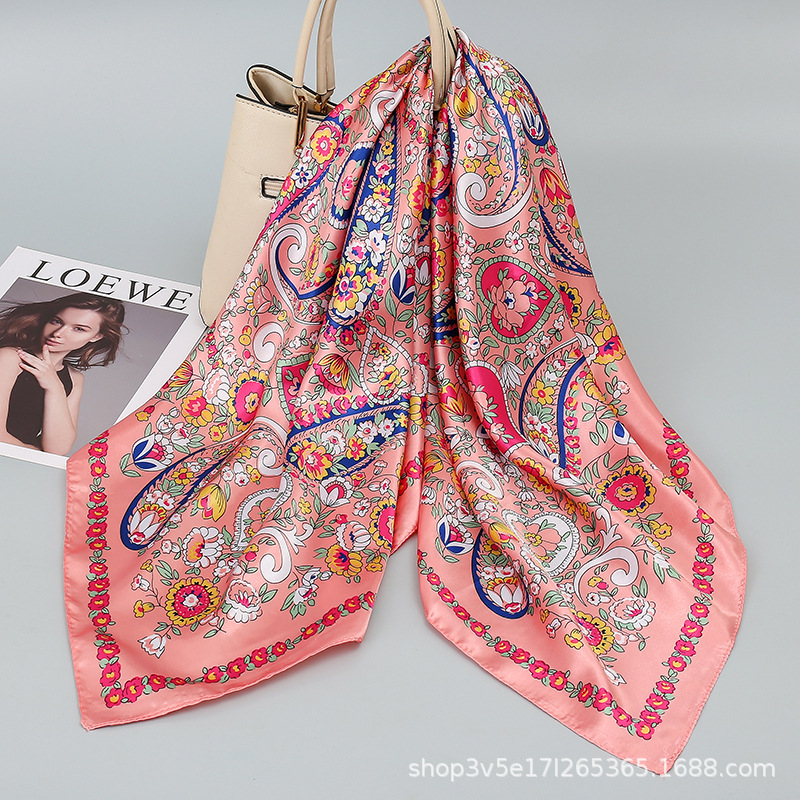 90cm 대형 사각형 스카프 프랑스 복고풍 꽃 스카프 봄과 여름 실크 스카프 우아한 터번 Jinjing 같은 스타일 장식 목도리