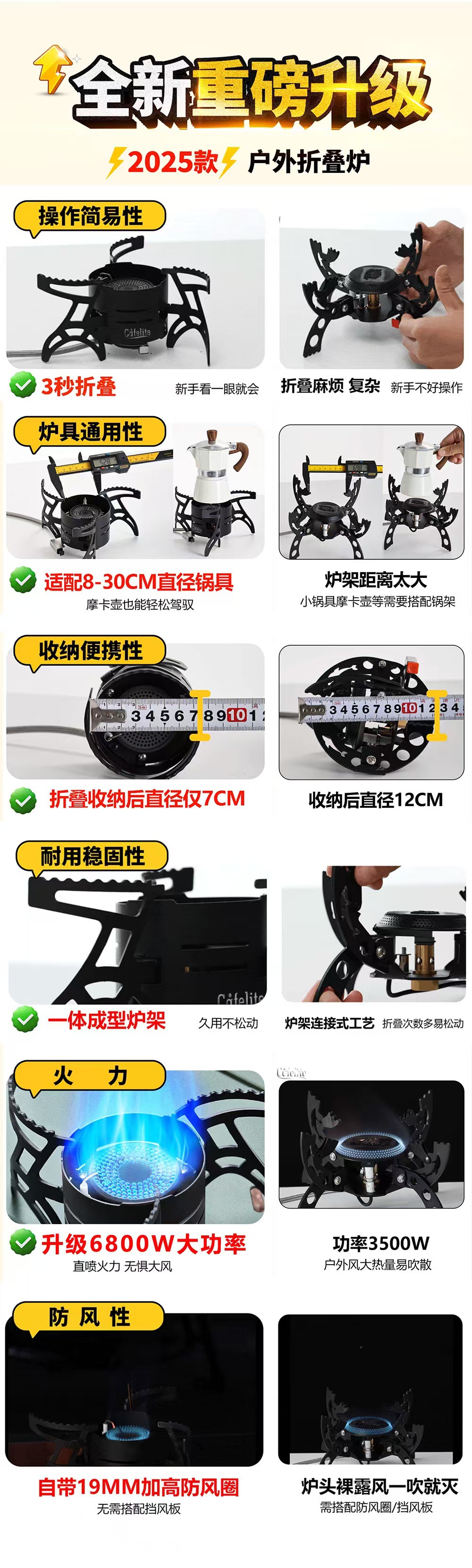 분할 풍차 스토브 Cafelite2025 새로운 야외 휴대용 등산 스토브 차 스토브 캠핑 스토브