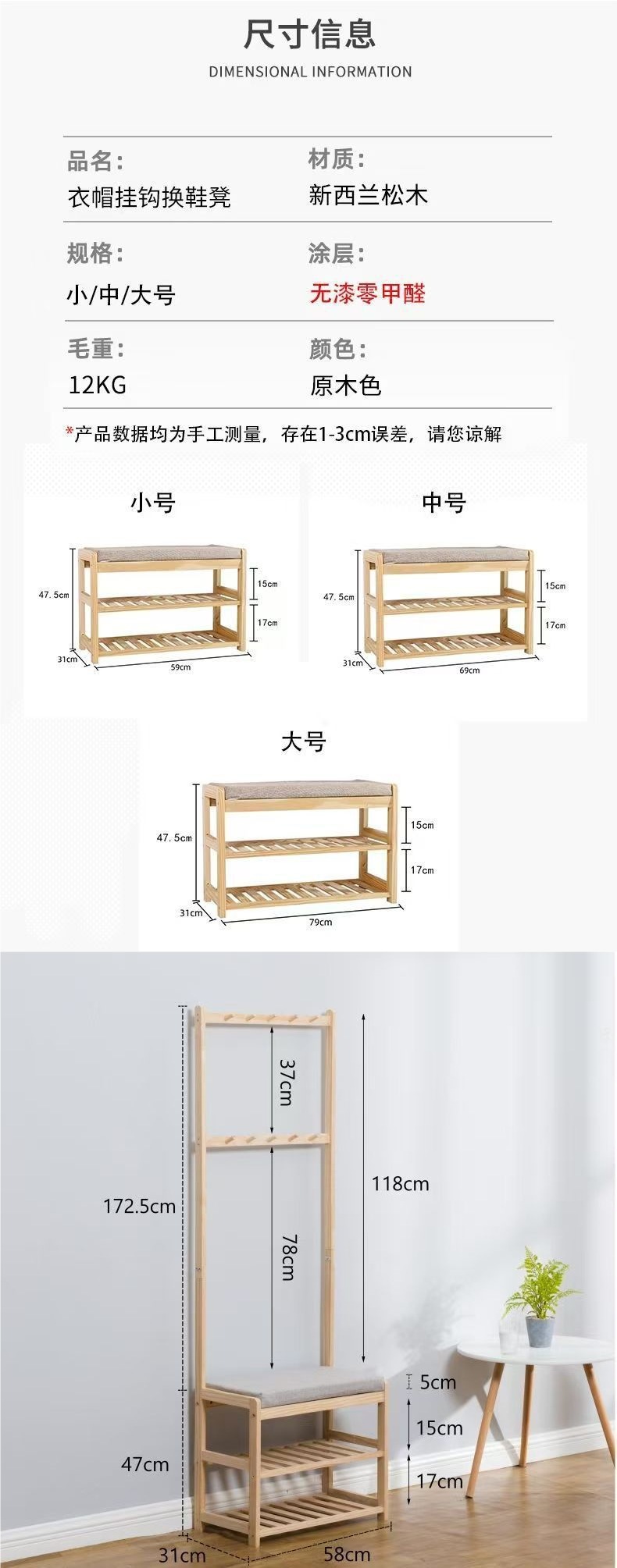 원목 신발교환대, 옷걸이, 일체형 가정용 거실 입구, 다기능 신발 및 모자 조합, 바닥형 코트 및 신발장스토어 가기