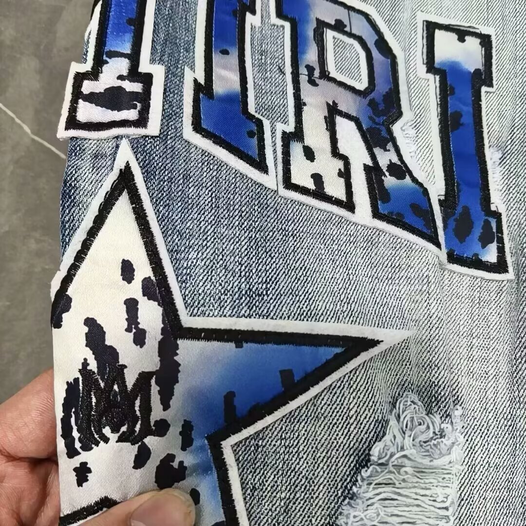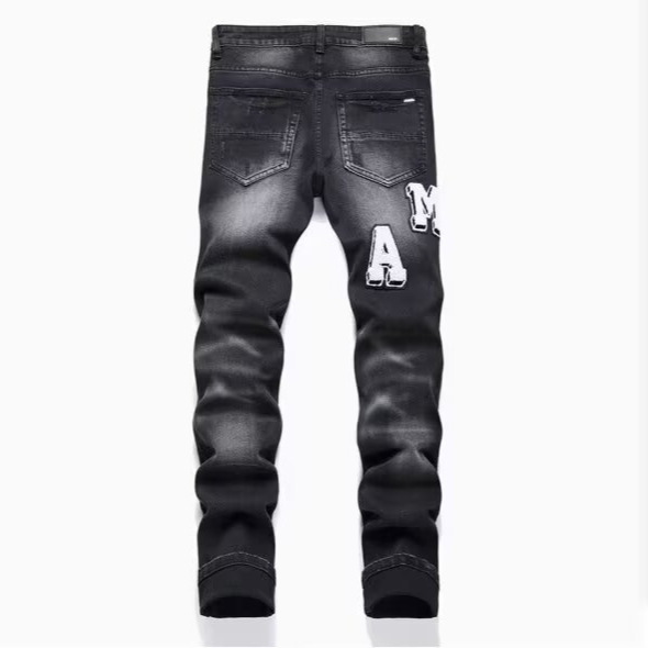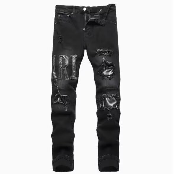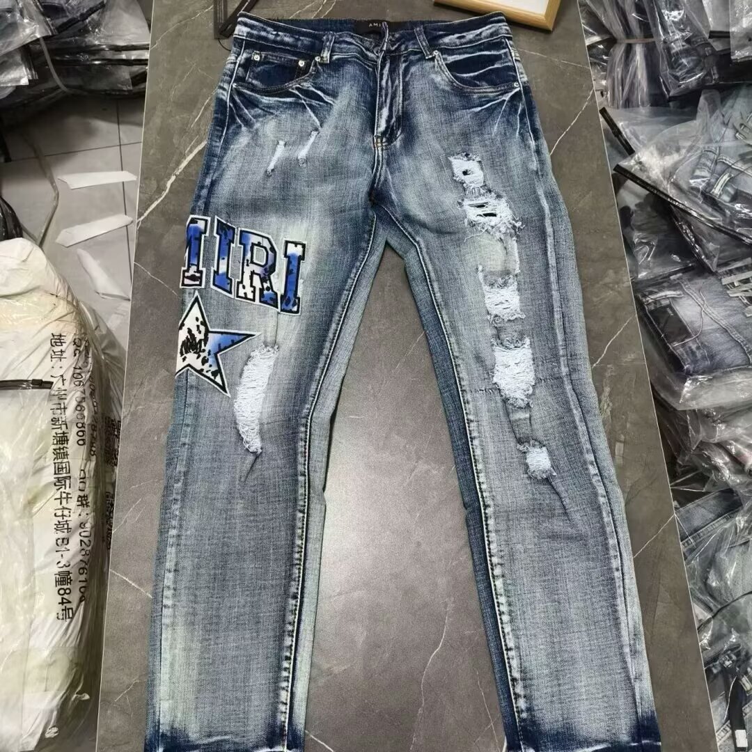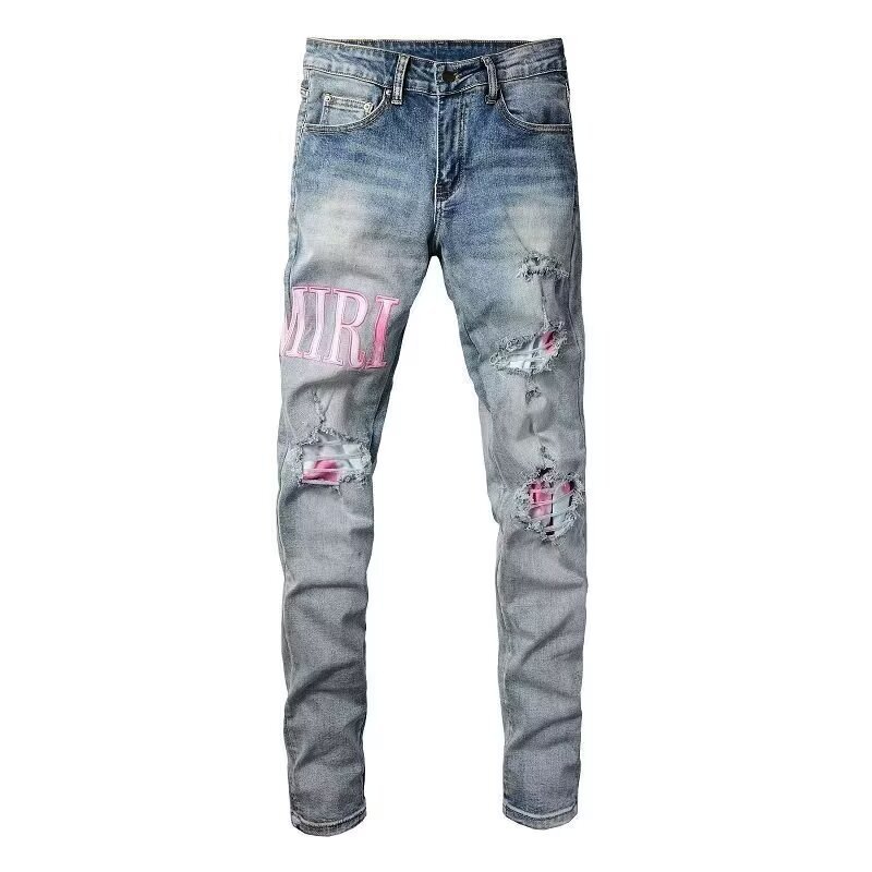 크로스보더 유럽 및 미국 하이스트리트 AMIRI 트렌디 브랜드 펑크 스타일 찢어진 패치 자수 슬림핏 신축성 있는 남성용 청바지스토어 가기