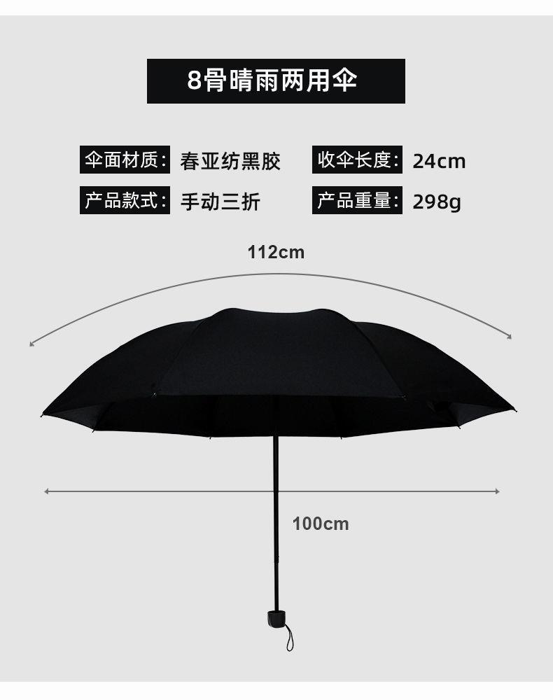 우산 심플 퓨어 블랙 비 또는 빛 비닐 자외선 차단제 10본 더블 파라솔 접이식 우산 없음