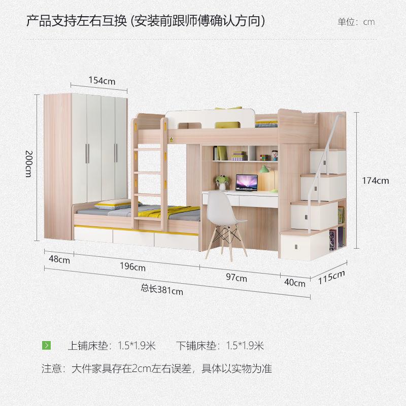• T형 옷장 짧은 상부 침대 + 하부 침대 + 옷장 + 사다리 캐비닛