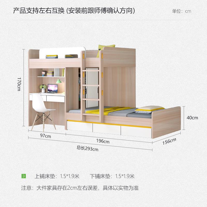 • S형 짧은 상부 침대 1.2 + 하부 침대 1.2 + 옷장