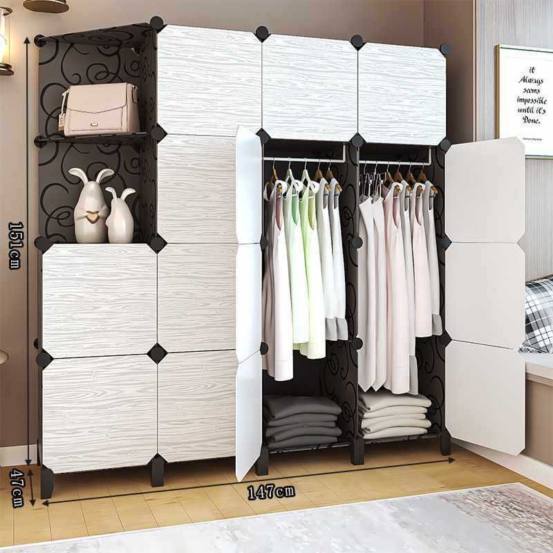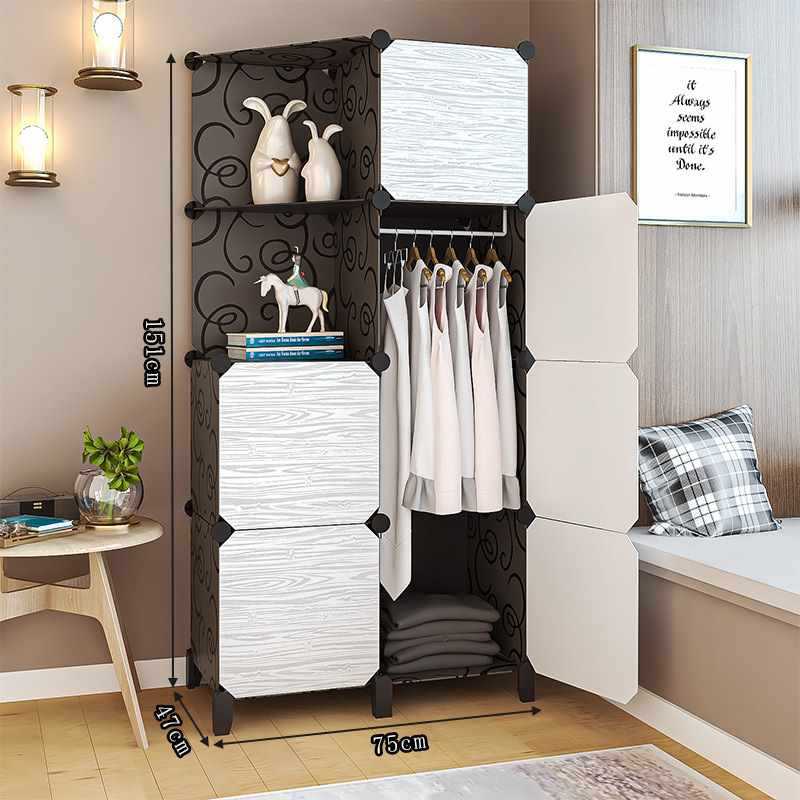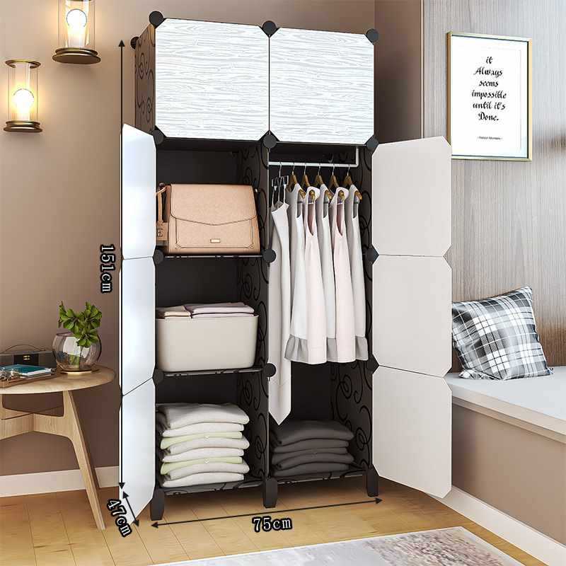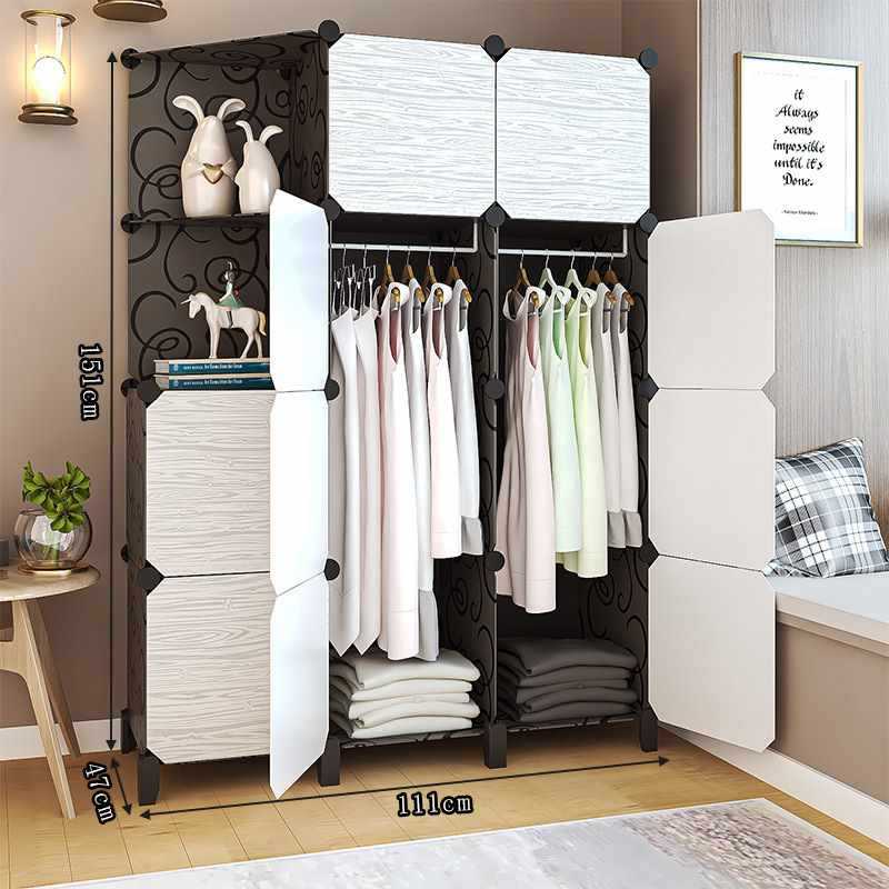 간단한 옷장 천 조립 학생 기숙사 보관 캐비닛 임대 방 침실 플라스틱 접이식 천 옷장