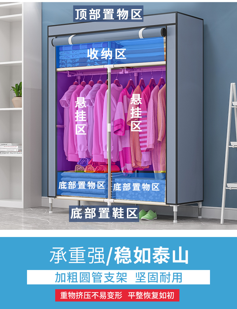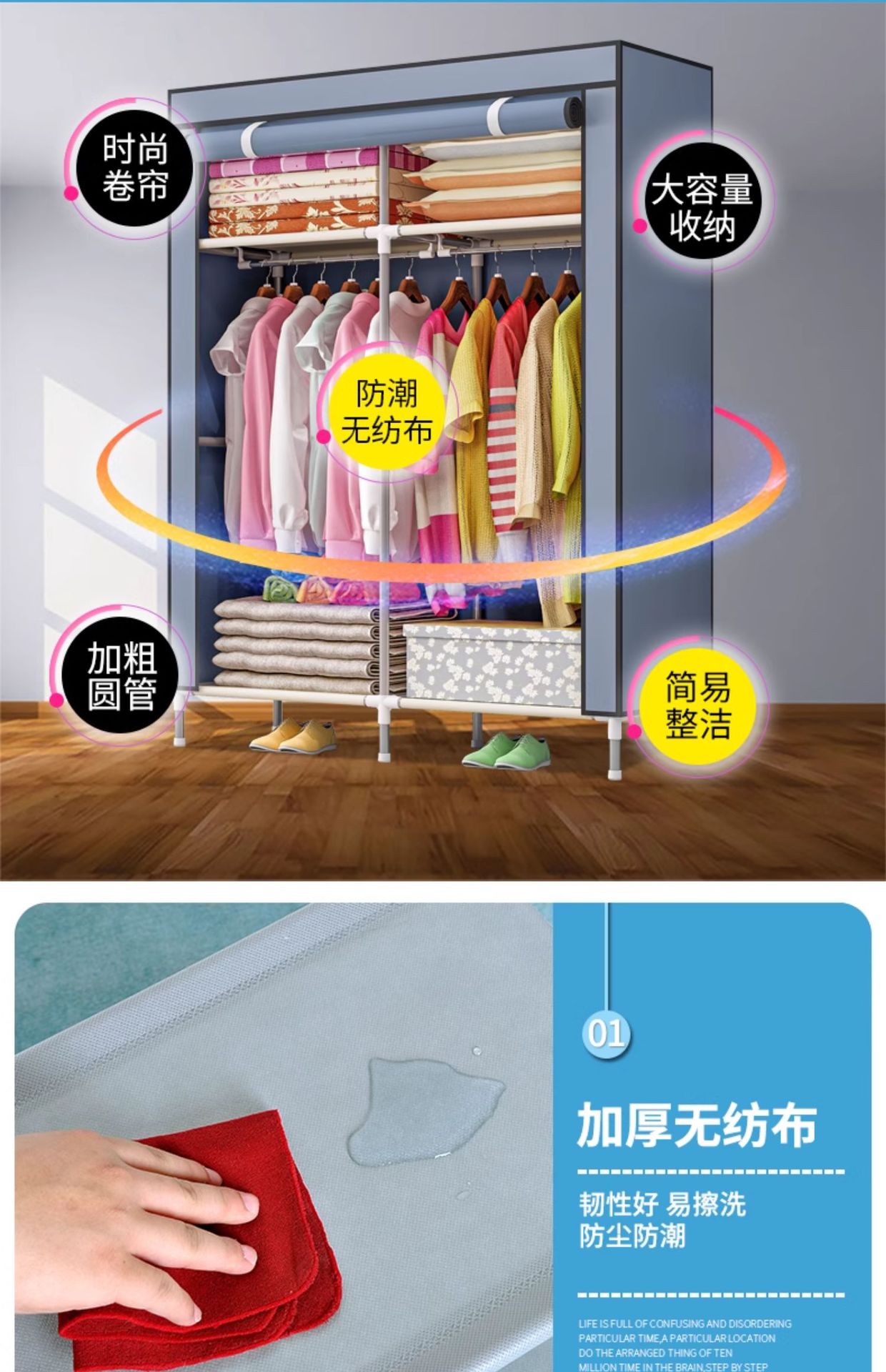 간단한 옷장, 침실, 가정용 천 옷장, 임대실, 싱글 기숙사, 조립식 소형 옷장, 튼튼하고 내구성이 뛰어남스토어 가기