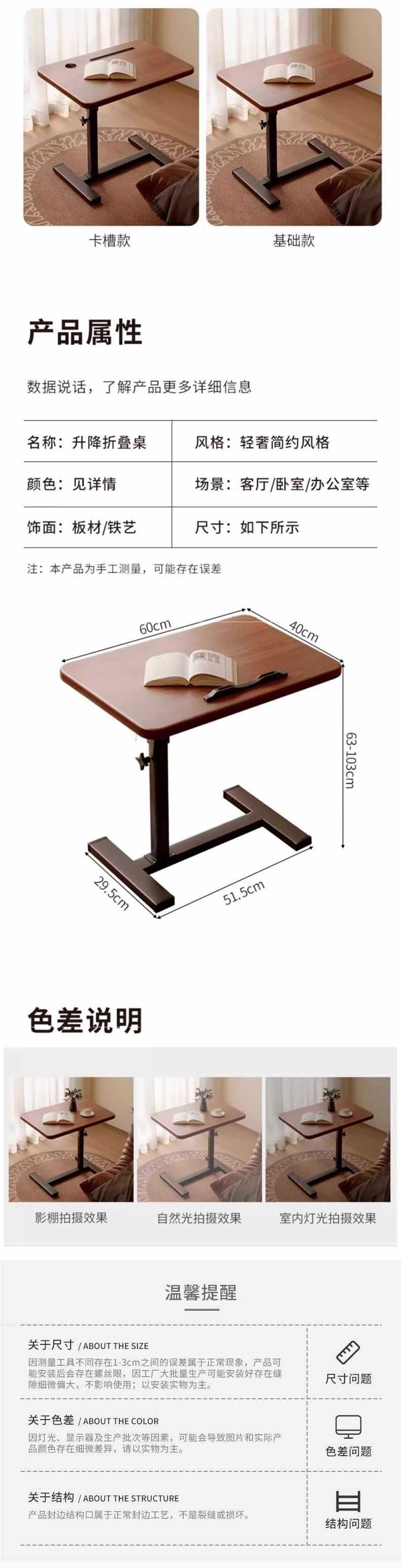 • [접이식 스탠다드 모델] 리프트 테이블 월넛 컬러