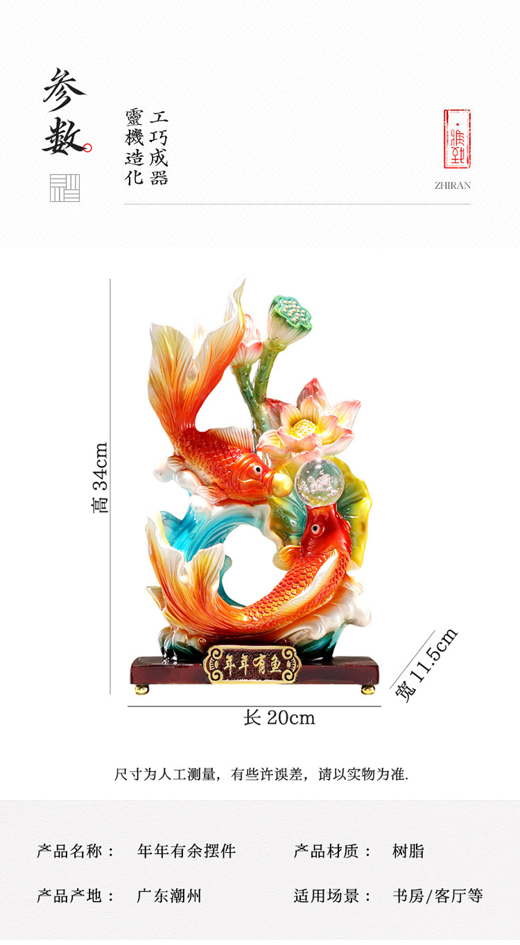 매년 물고기 장식품, 창의적인 새로운 중국 공예품, 수지 거실, 현관, 와인 캐비닛 장식, 데스크탑스토어 가기