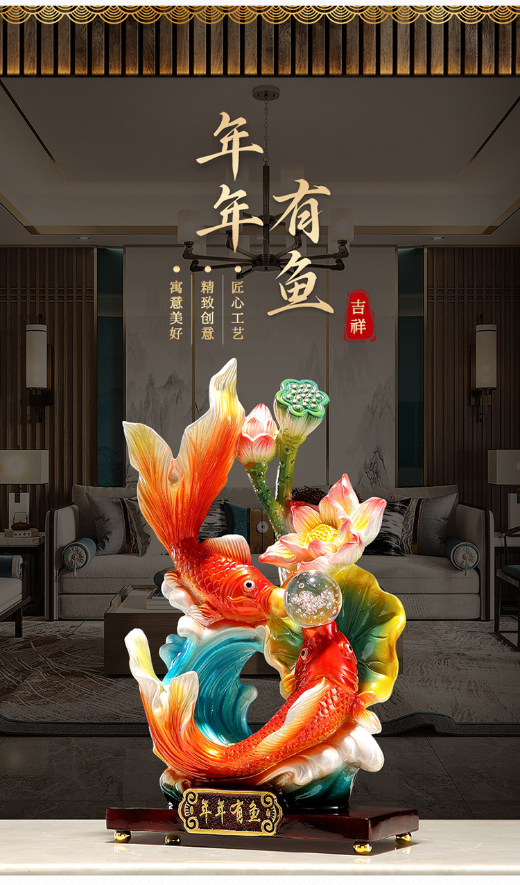 매년 물고기 장식품, 창의적인 새로운 중국 공예품, 수지 거실, 현관, 와인 캐비닛 장식, 데스크탑