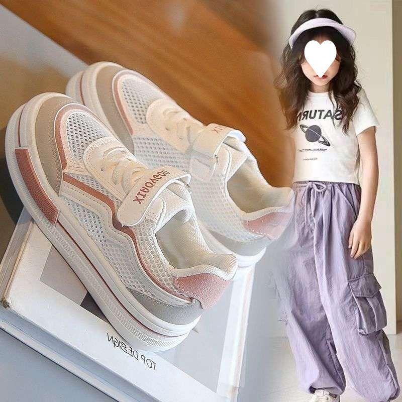 여자 캠퍼스 스타일 운동화 2025 봄과 여름 새로운 어린이 복고풍 단일 메쉬 통기성 운동화 소년 국가 유행 메쉬 신발스토어 가기