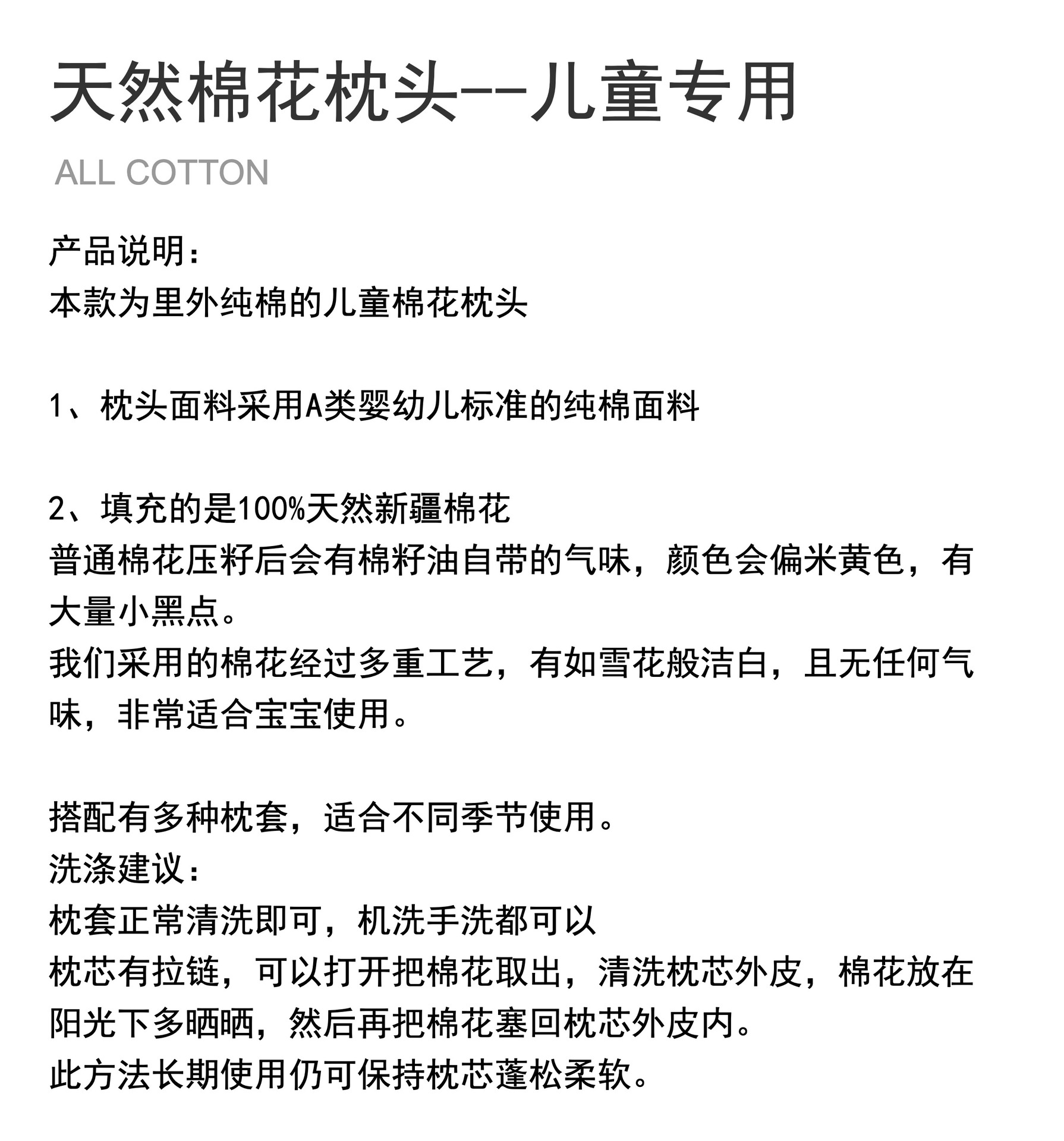어린이 면 베개 1~3세 이상 유치원 4세 아기 특수 1세 순면 6개월 아기 베개 코어