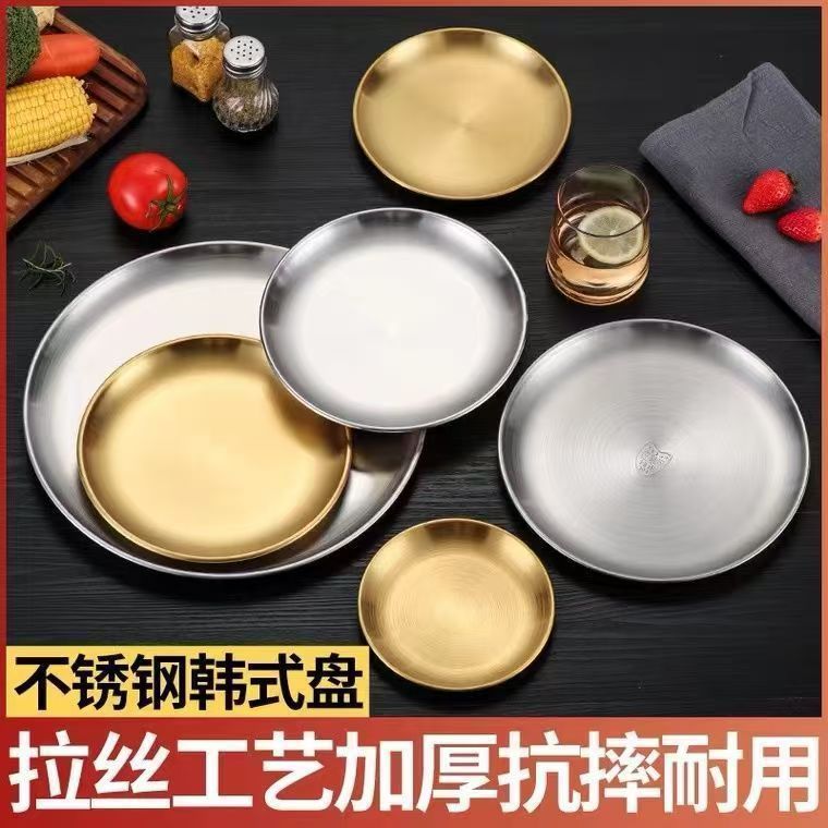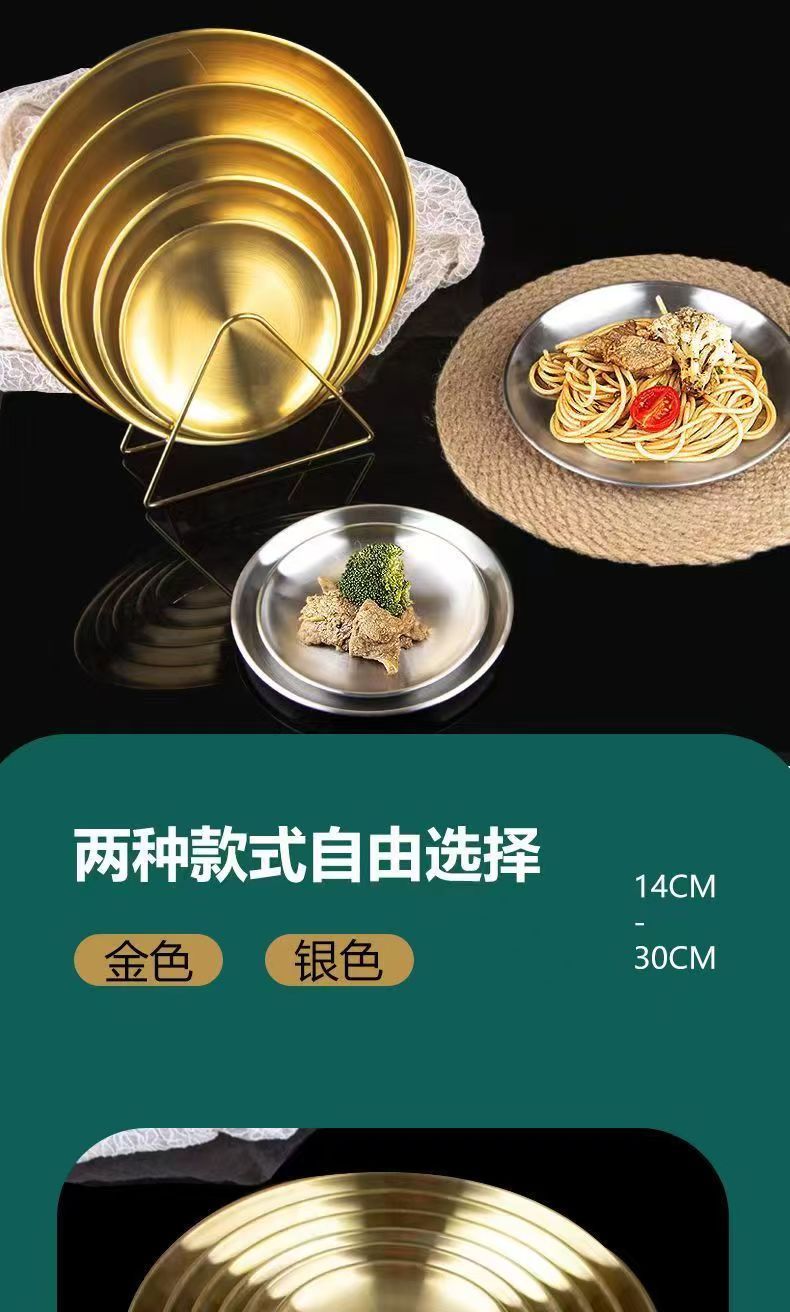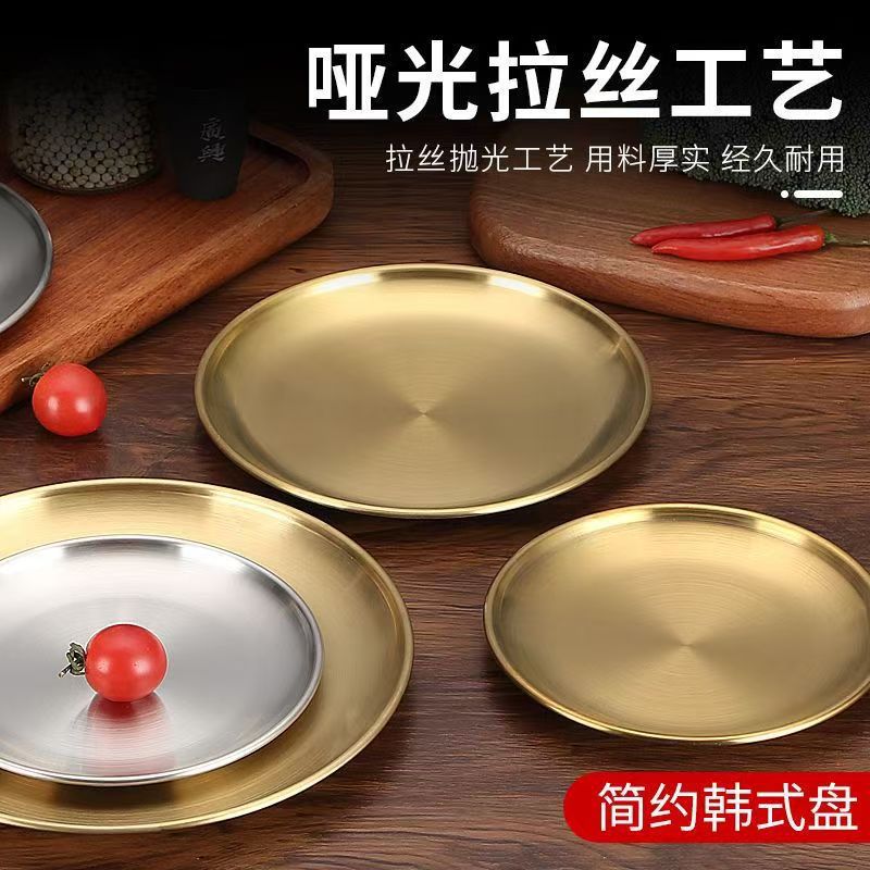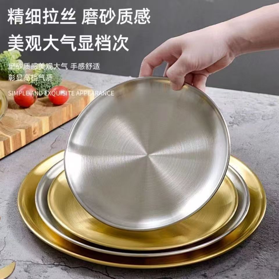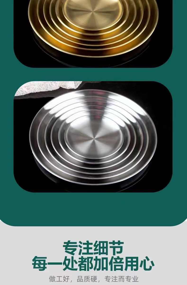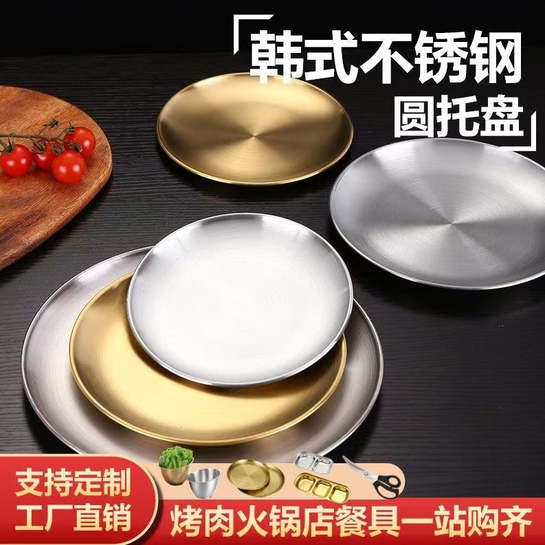 한국 스테인레스 스틸 두꺼운 상업용 디스크 바베큐 골든 케이크 트레이 카페 스낵 트레이 뼈 접시 얕은 접시