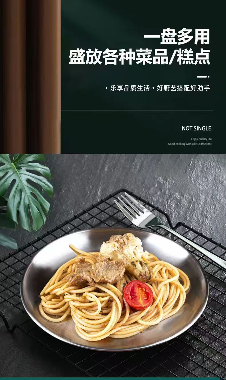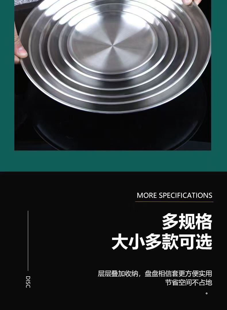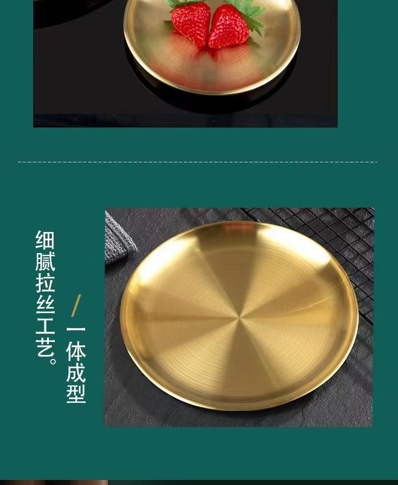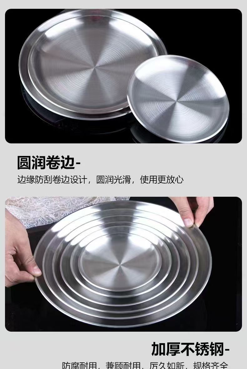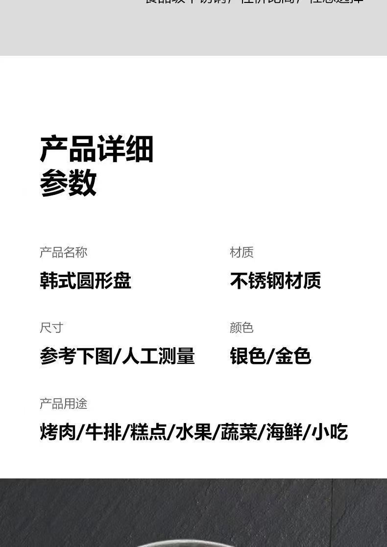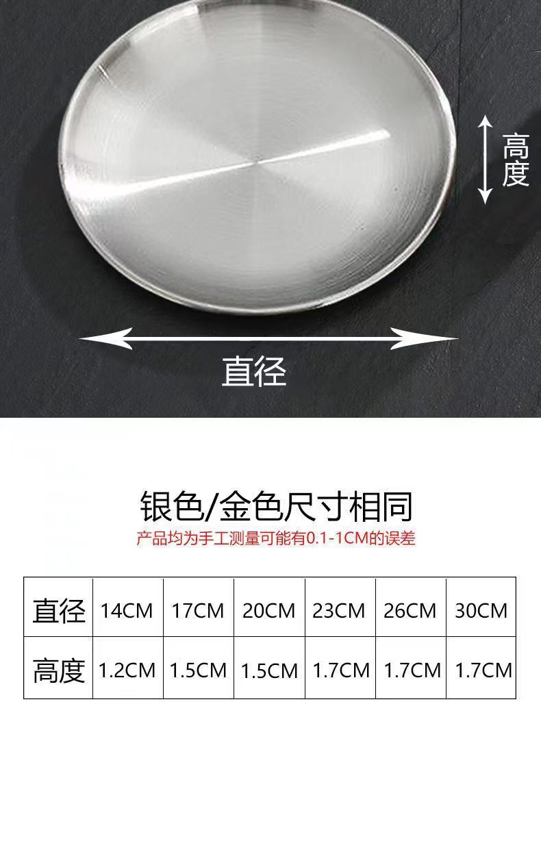 한국 스테인레스 스틸 두꺼운 상업용 디스크 바베큐 골든 케이크 트레이 카페 스낵 트레이 뼈 접시 얕은 접시