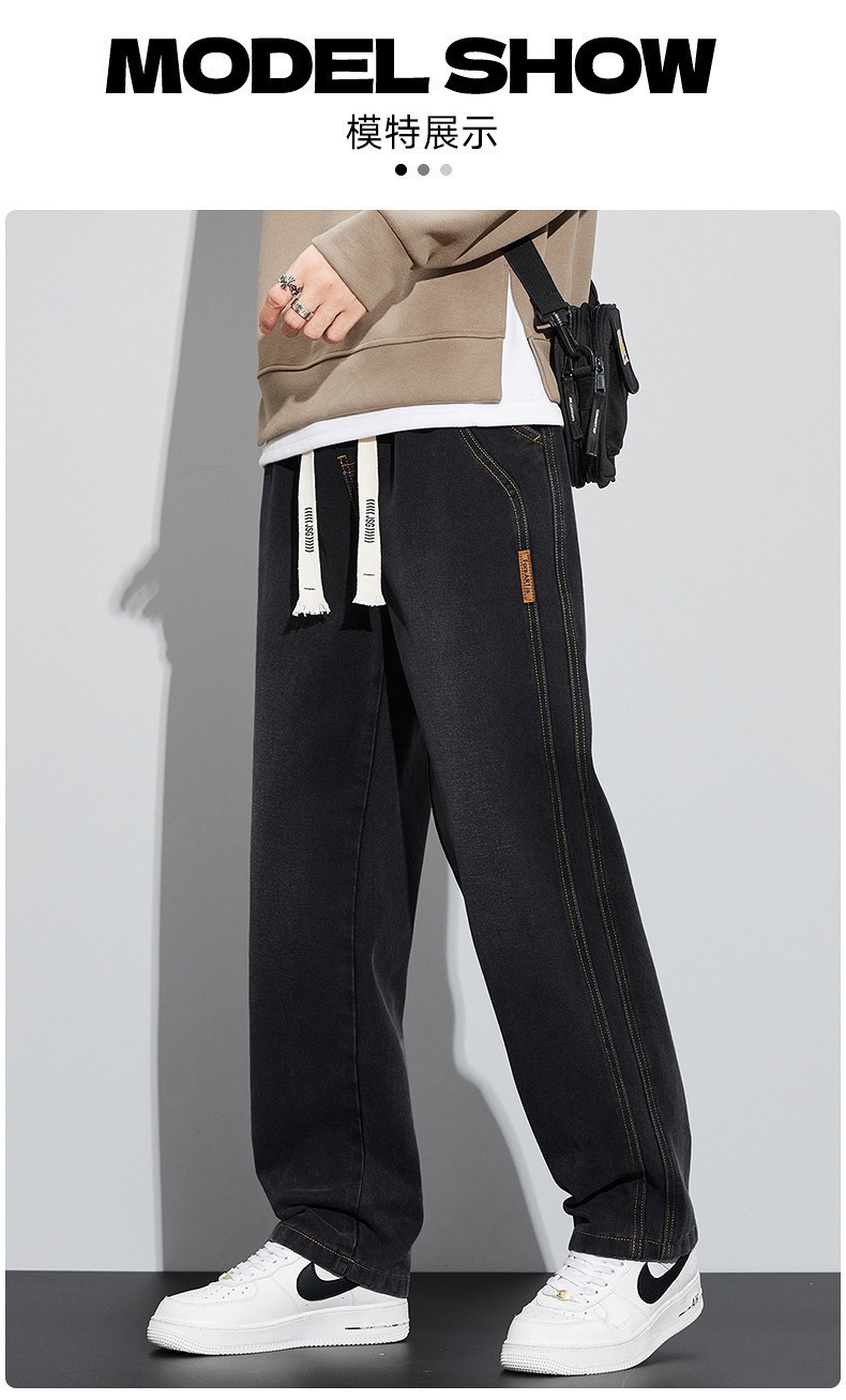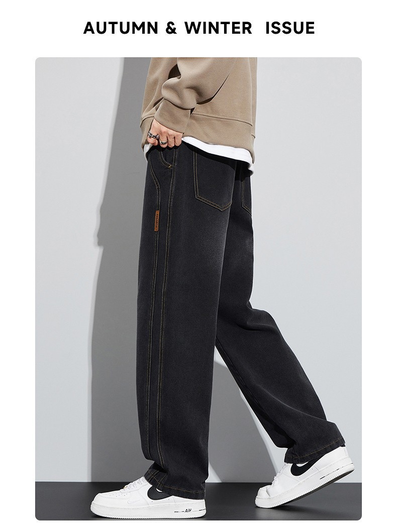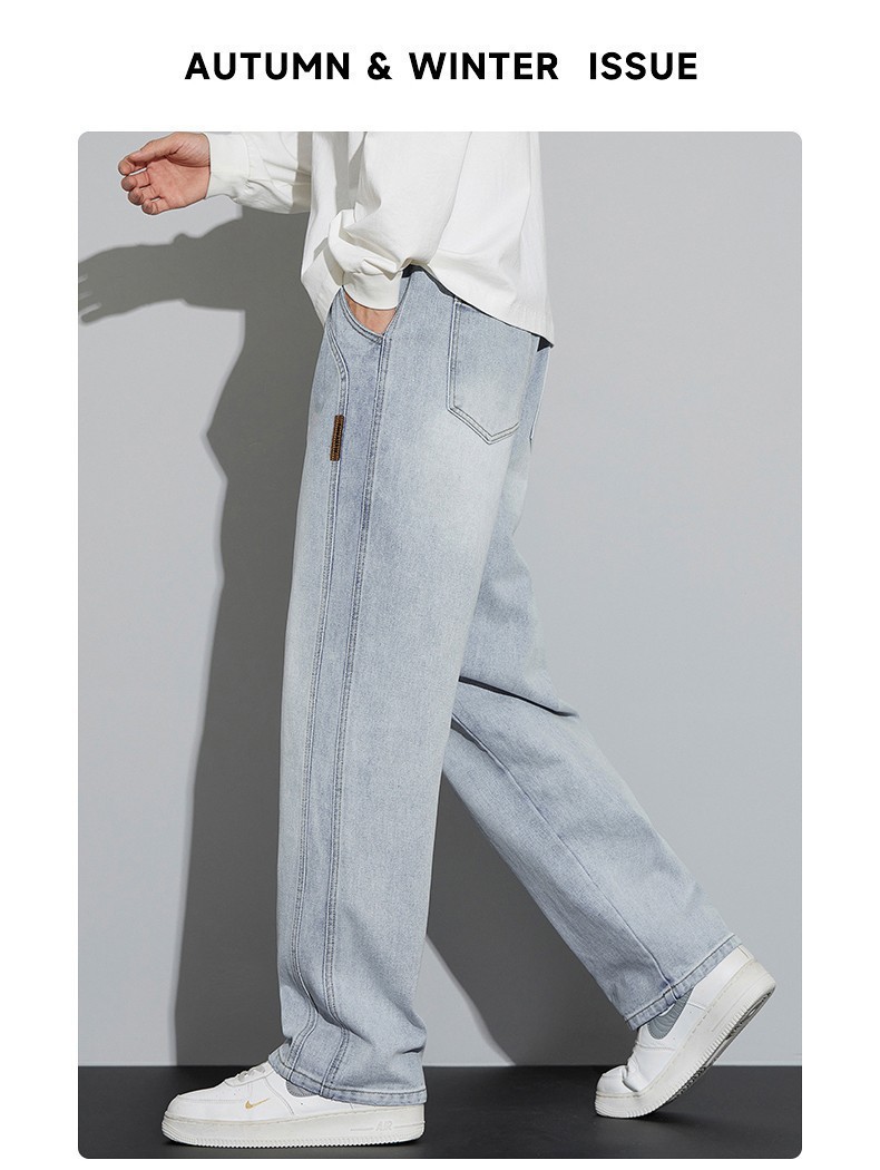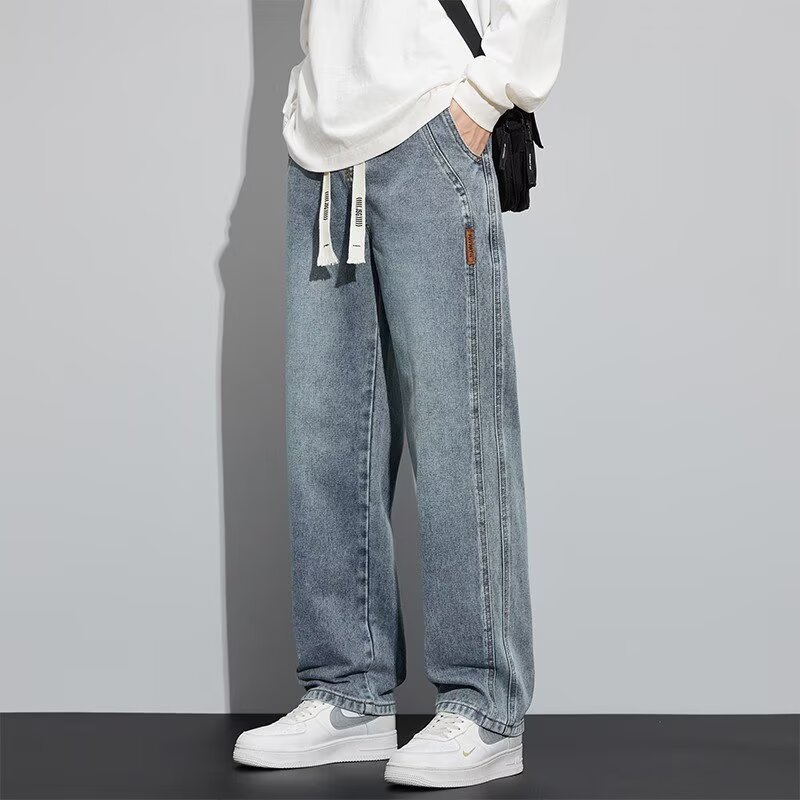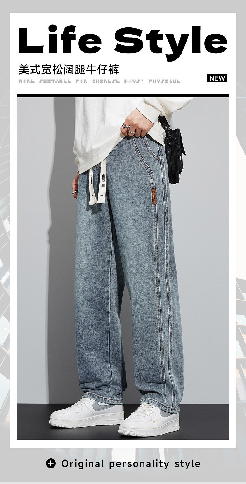 남성용 청바지 봄, 가을 두꺼운 스트레이트 루즈 캐주얼 바지 미국 트렌디 브랜드 와이드 레그 신작 남성 바지스토어 가기