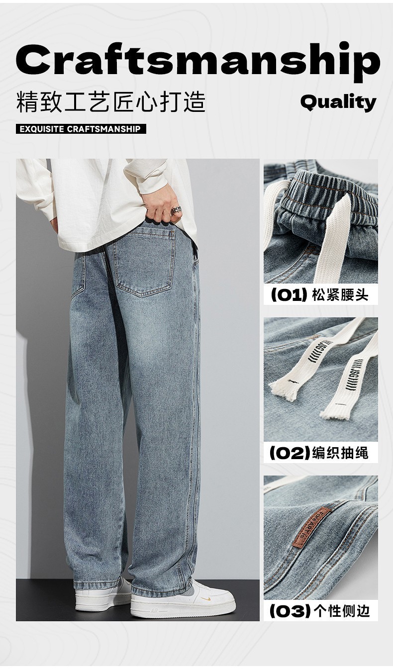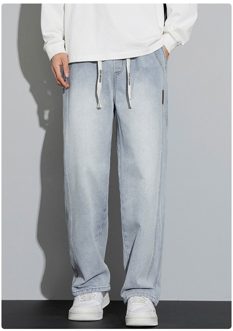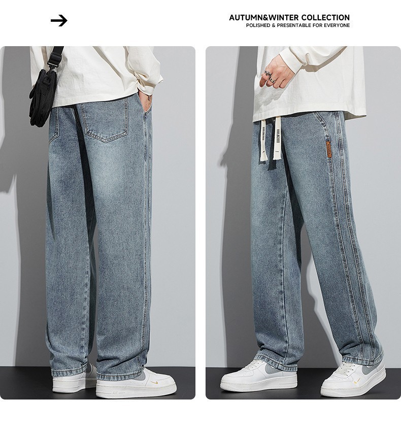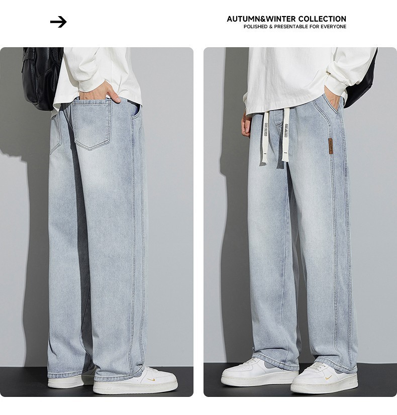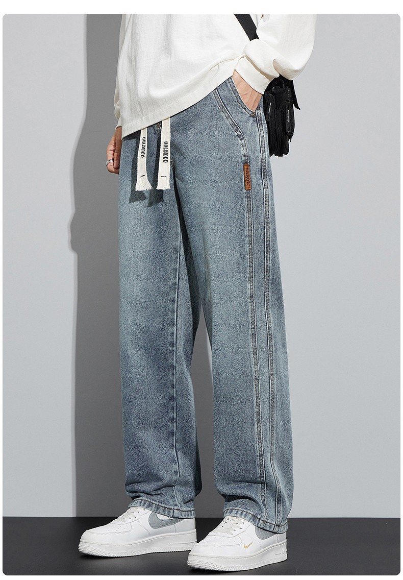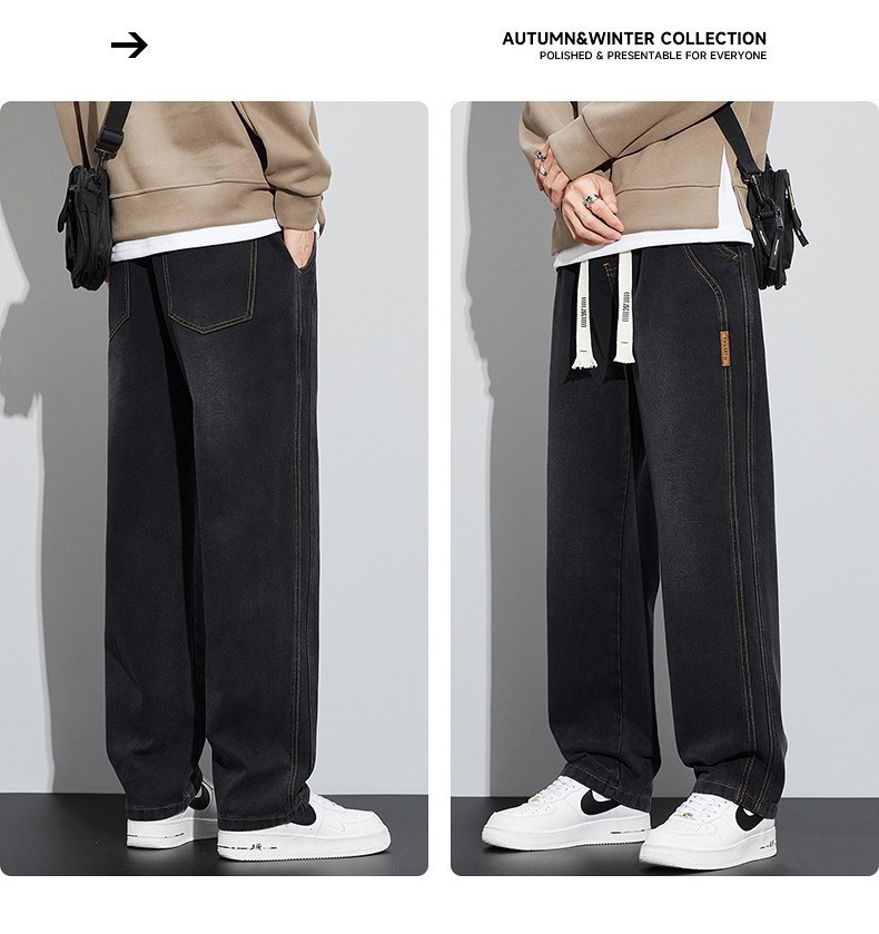 남성용 청바지 봄, 가을 두꺼운 스트레이트 루즈 캐주얼 바지 미국 트렌디 브랜드 와이드 레그 신작 남성 바지스토어 가기