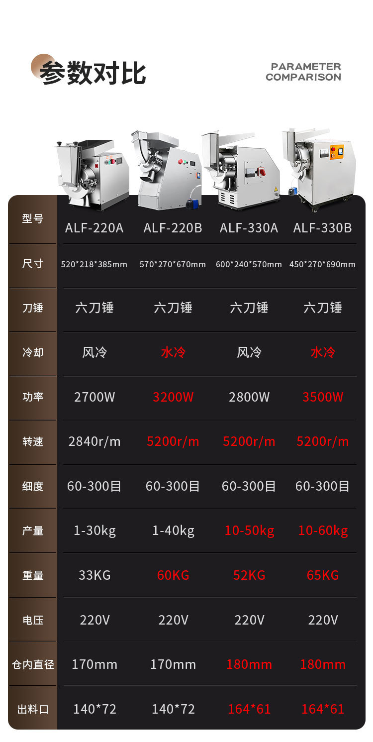 • ALF-330B 수냉식 냉각 초미세 분말 분쇄기 3500W 상업용 권장