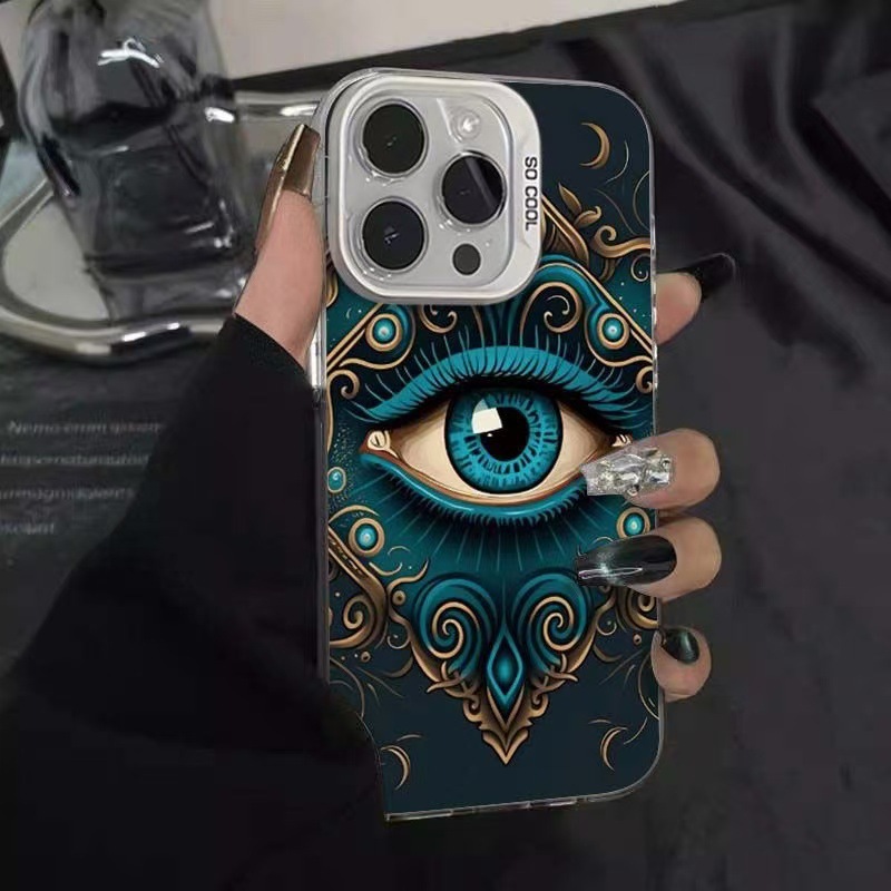 Apple 15Promax 휴대폰 케이스 iPhone16Pro 14Pro Advanced 13 유럽 및 미국에 적합한 파란색 및 녹색 토템 아이