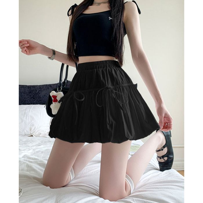 2025 여성을위한 새로운 달콤한 스타일 푹신한 꽃 버드 스커트 여름 탄성 허리 노출 방지 a 라인 스커트스토어 가기