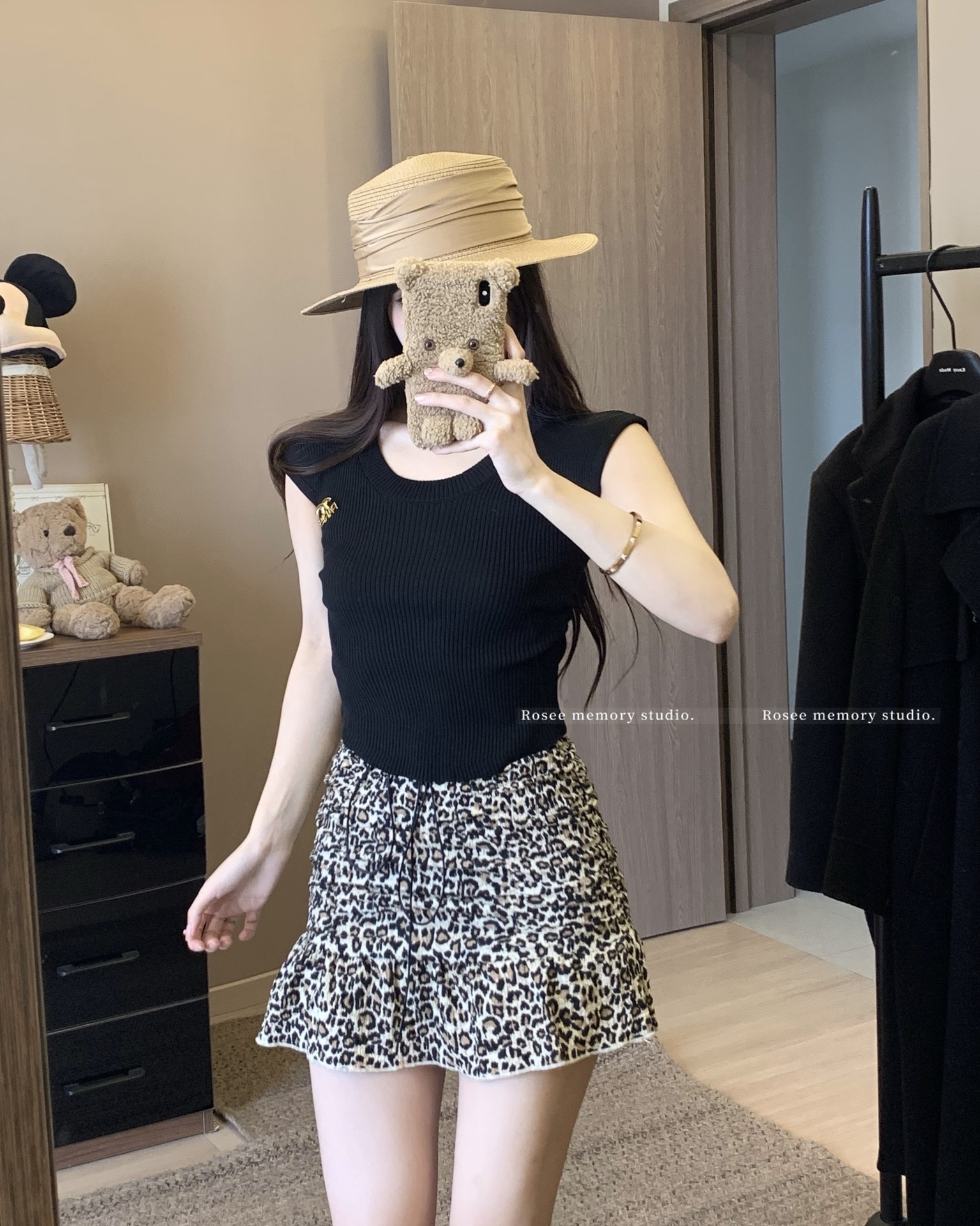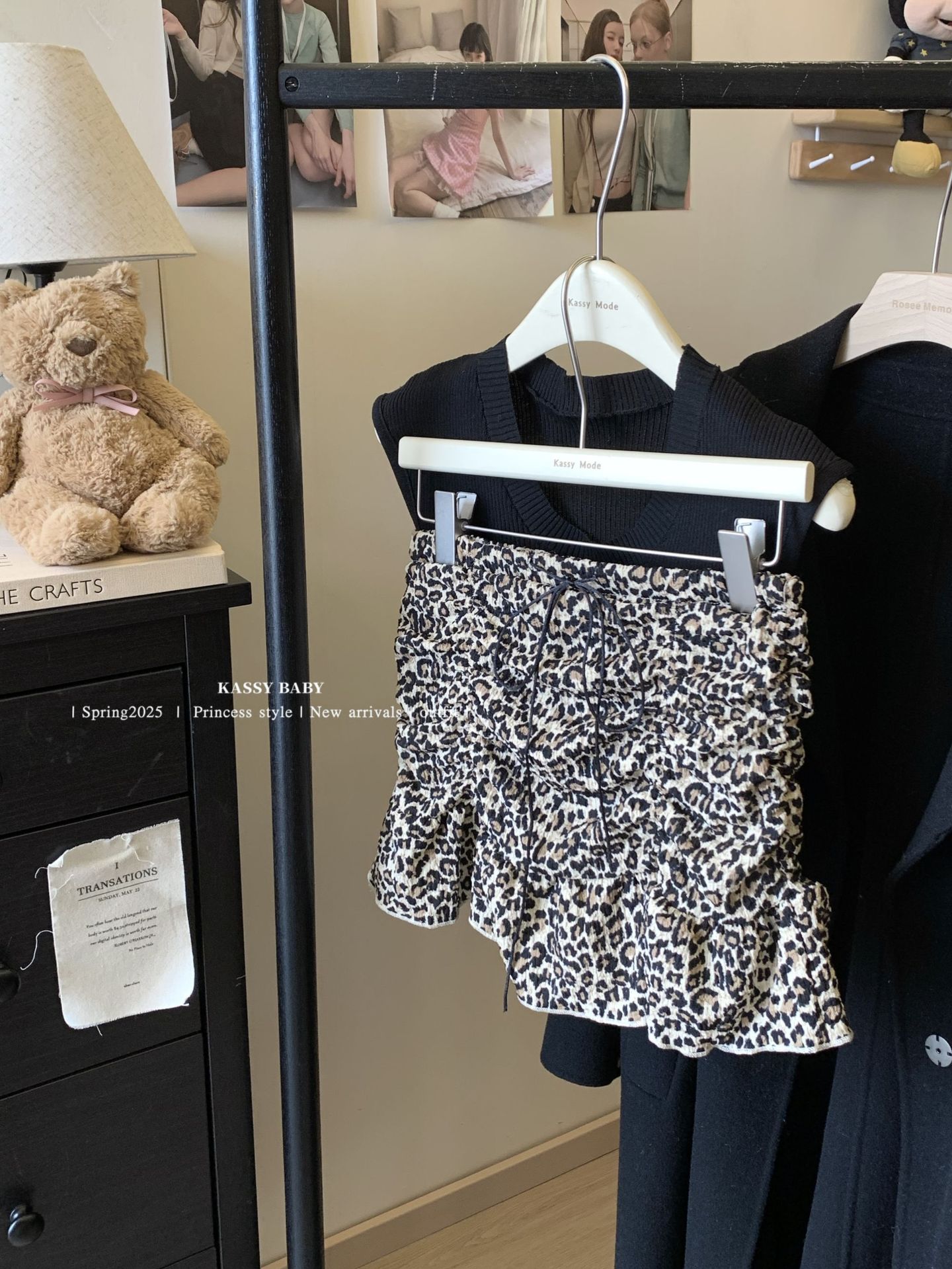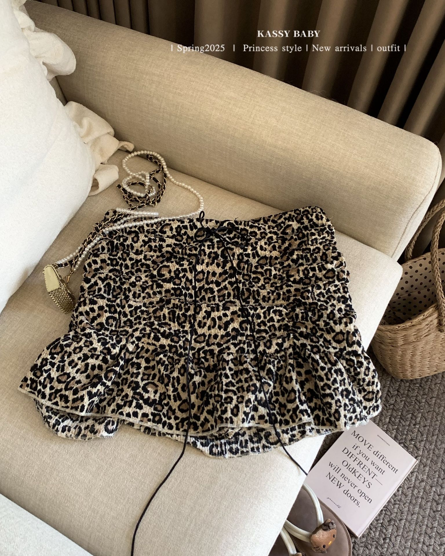 아메리칸 레트로 레오파드 프린트 레이스 업 러플 스커트 여성 여름 하이 웨이스트 슬리밍 노출 방지 A 라인 스커트 짧은 스커트스토어 가기