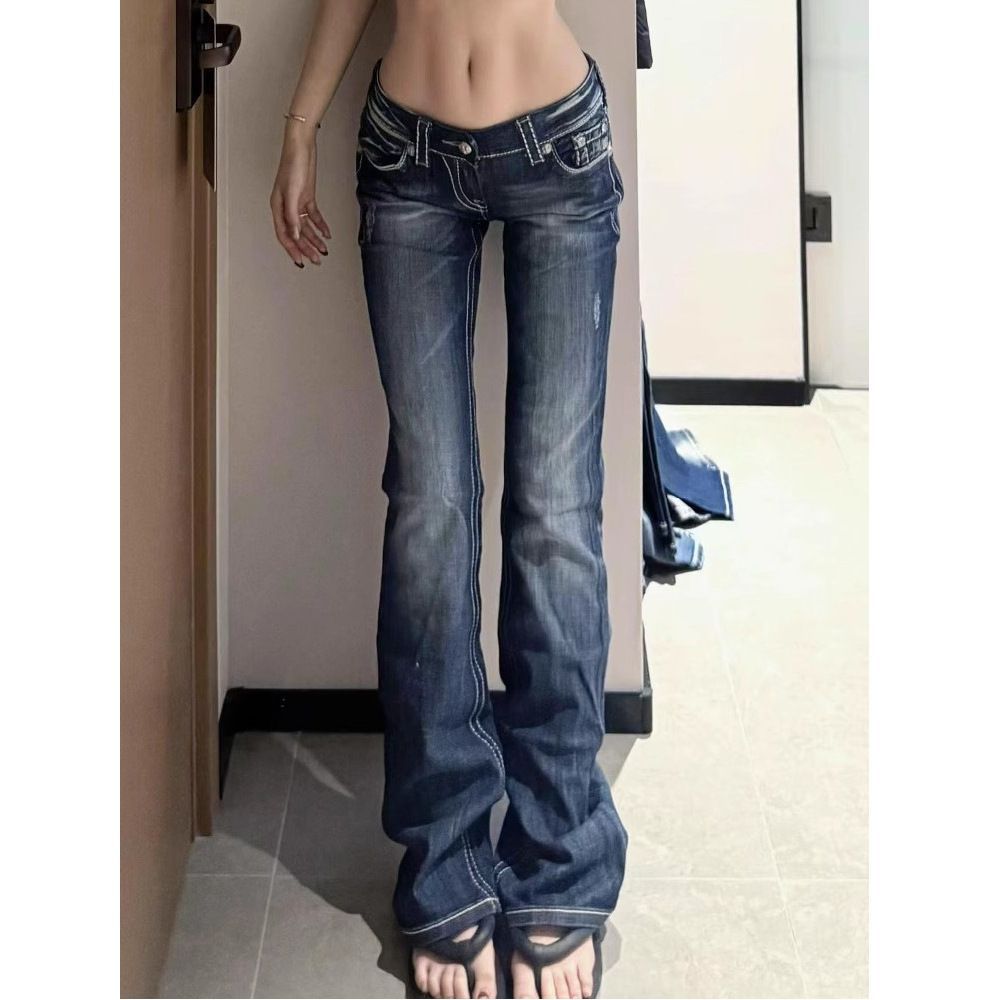 여성용 아메리칸 하이 스트리트 헤비듀티 다이아몬드 자수 로우 웨이스트 청바지 y2k Millennial Hot Girl 슬리밍 바닥 길이 바지스토어 가기