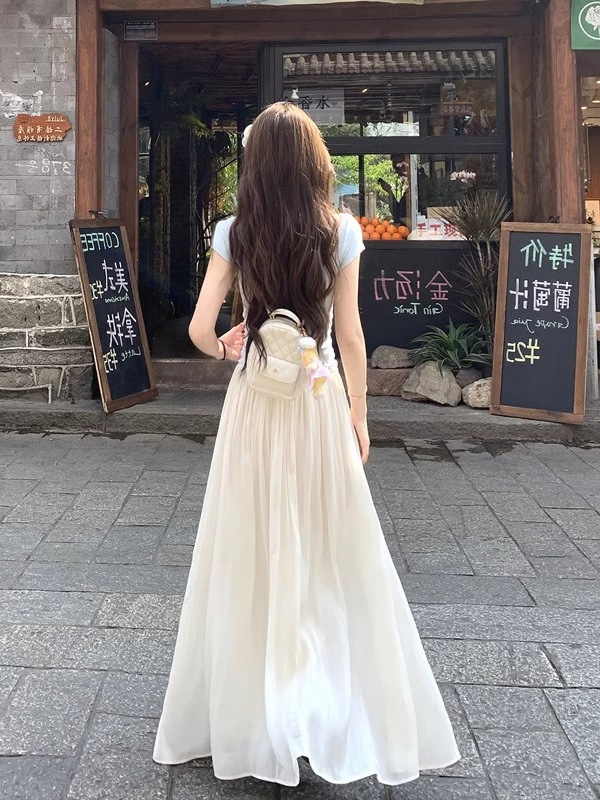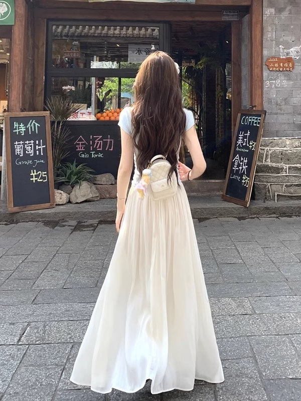 살구 슈퍼 요정 스트리머 원사 하이 웨이스트 A 라인 스커트 여성 여름 신축성있는 허리 루즈 다용도 슬리밍 롱 스커트