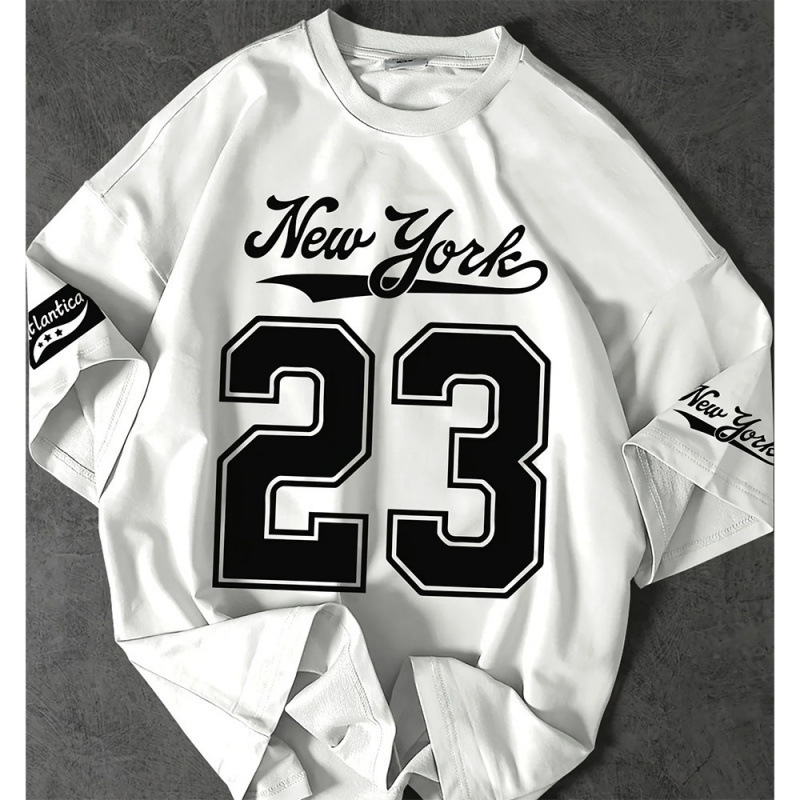 여름 반팔 미국 복고풍 남성 및 여성 캐주얼 스포츠 디지털 스플라이싱 농구 힙합 루즈 속건 티셔츠
