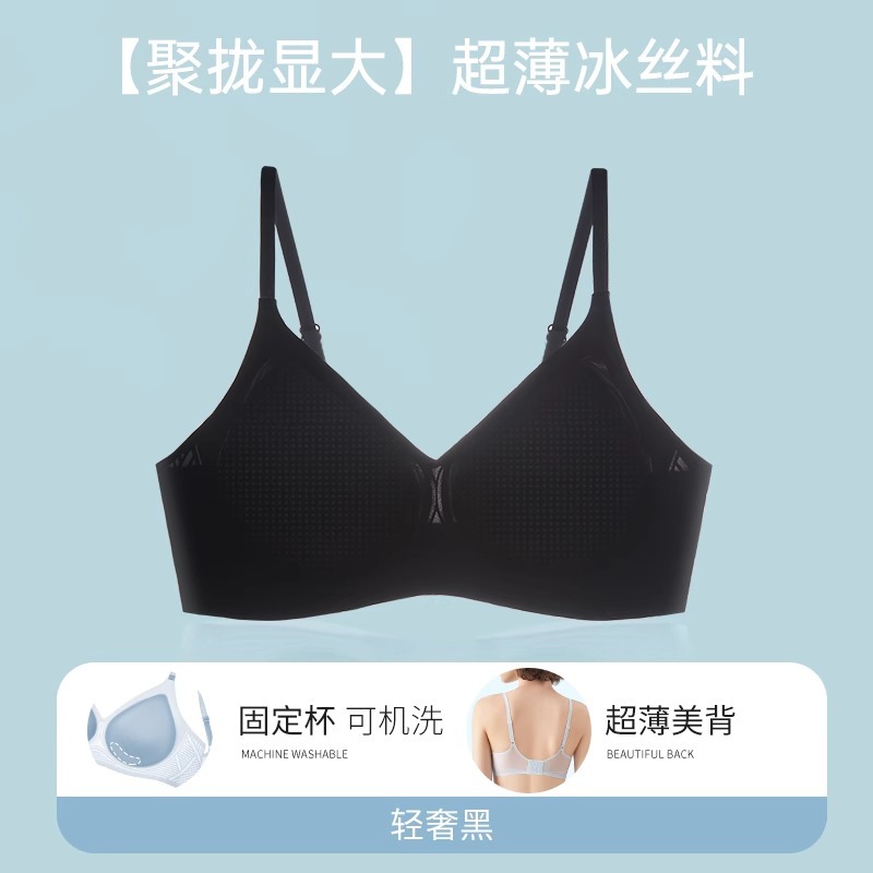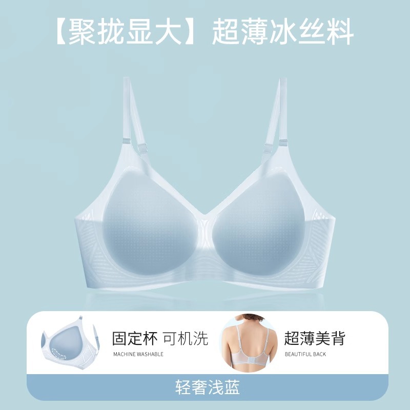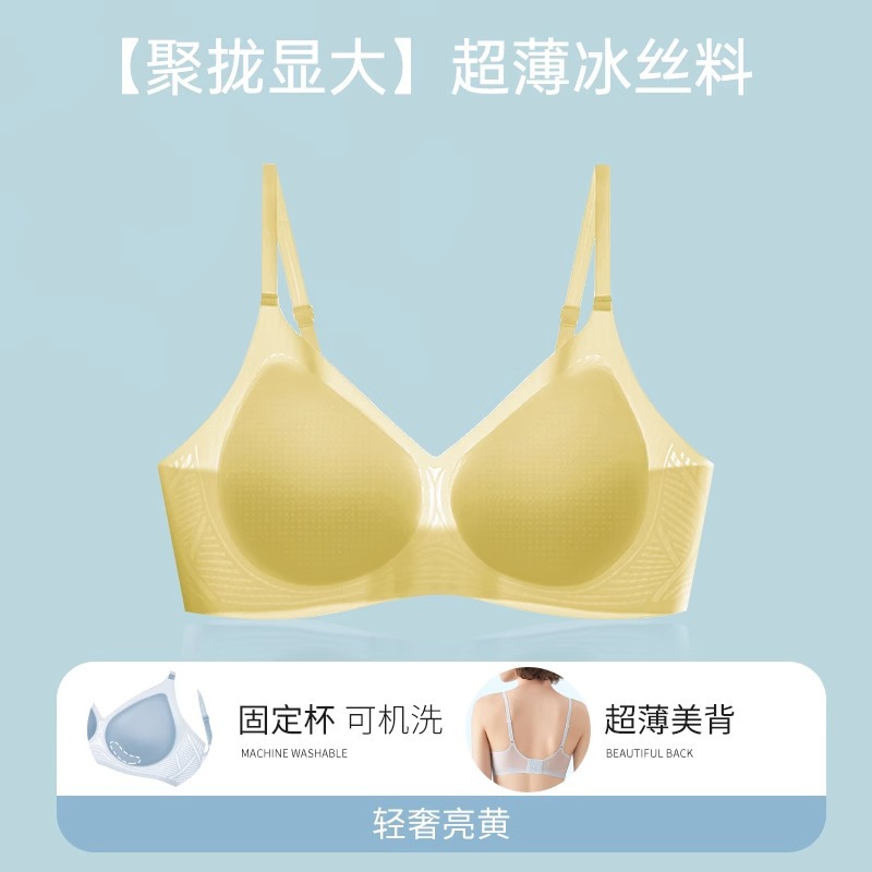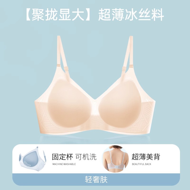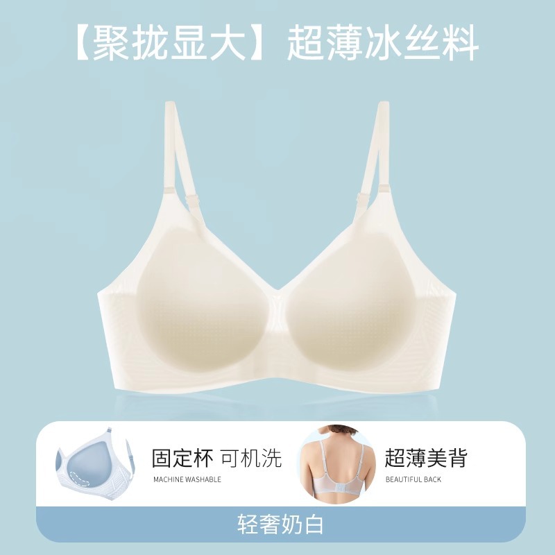 여성용 심리스 아이스 실크 쿨링 속옷, 와이어 없음, 마이크로 푸쉬업, 큰 가슴, 작은 수면 브라, 가슴 수축 및 처짐 방지스토어 가기