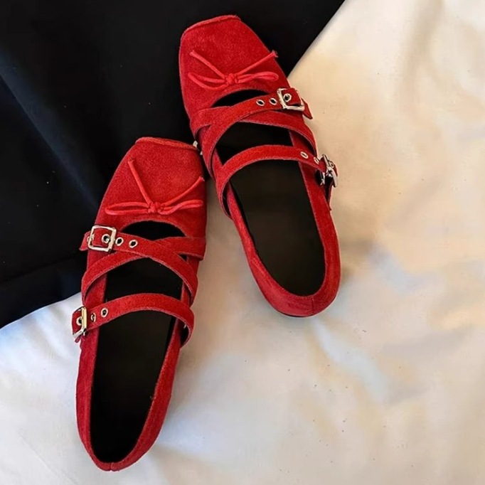 부드러운 가죽 버전~5cm 키높이 스퀘어토 리본 벨트 버클 실버 메리제인 슈즈 부드러운 밑창 발레 슈즈 여성용