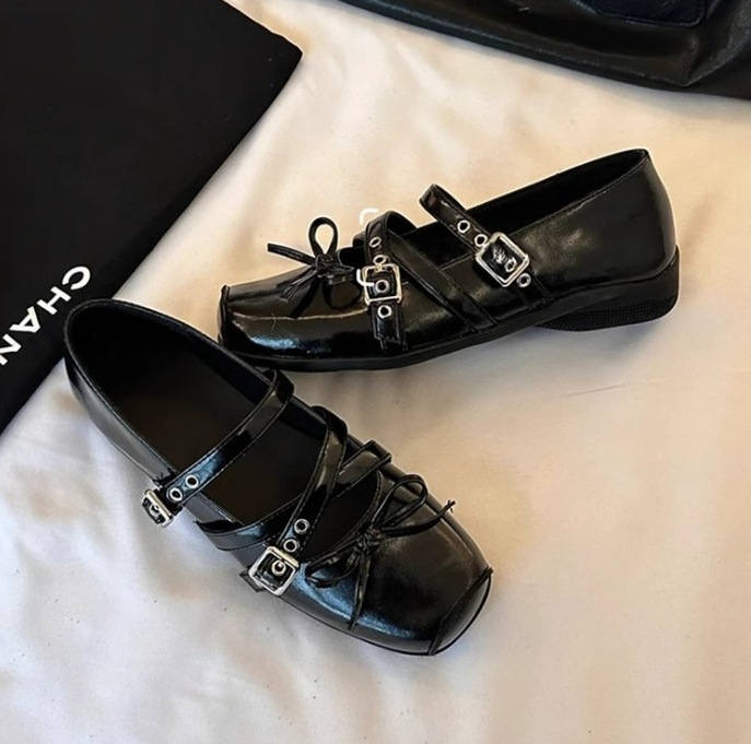 부드러운 가죽 버전~5cm 키높이 스퀘어토 리본 벨트 버클 실버 메리제인 슈즈 부드러운 밑창 발레 슈즈 여성용스토어 가기