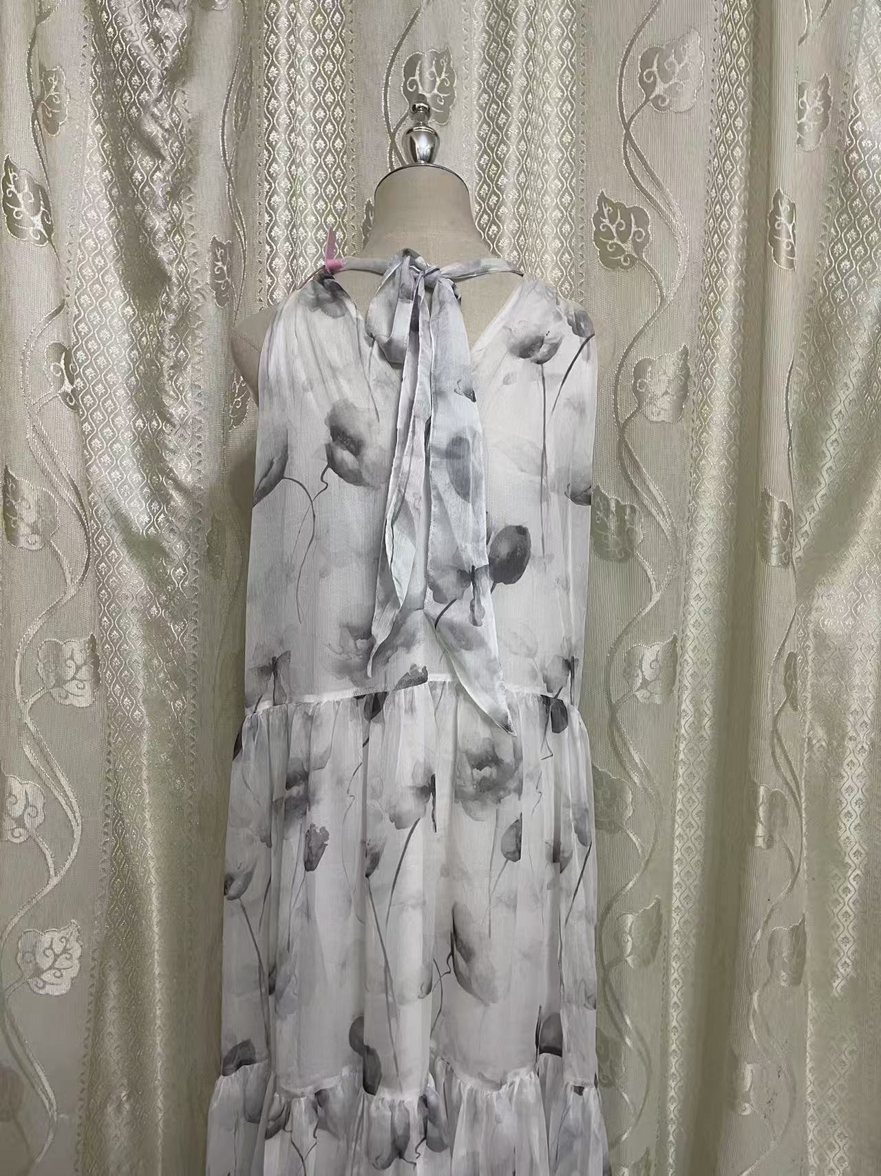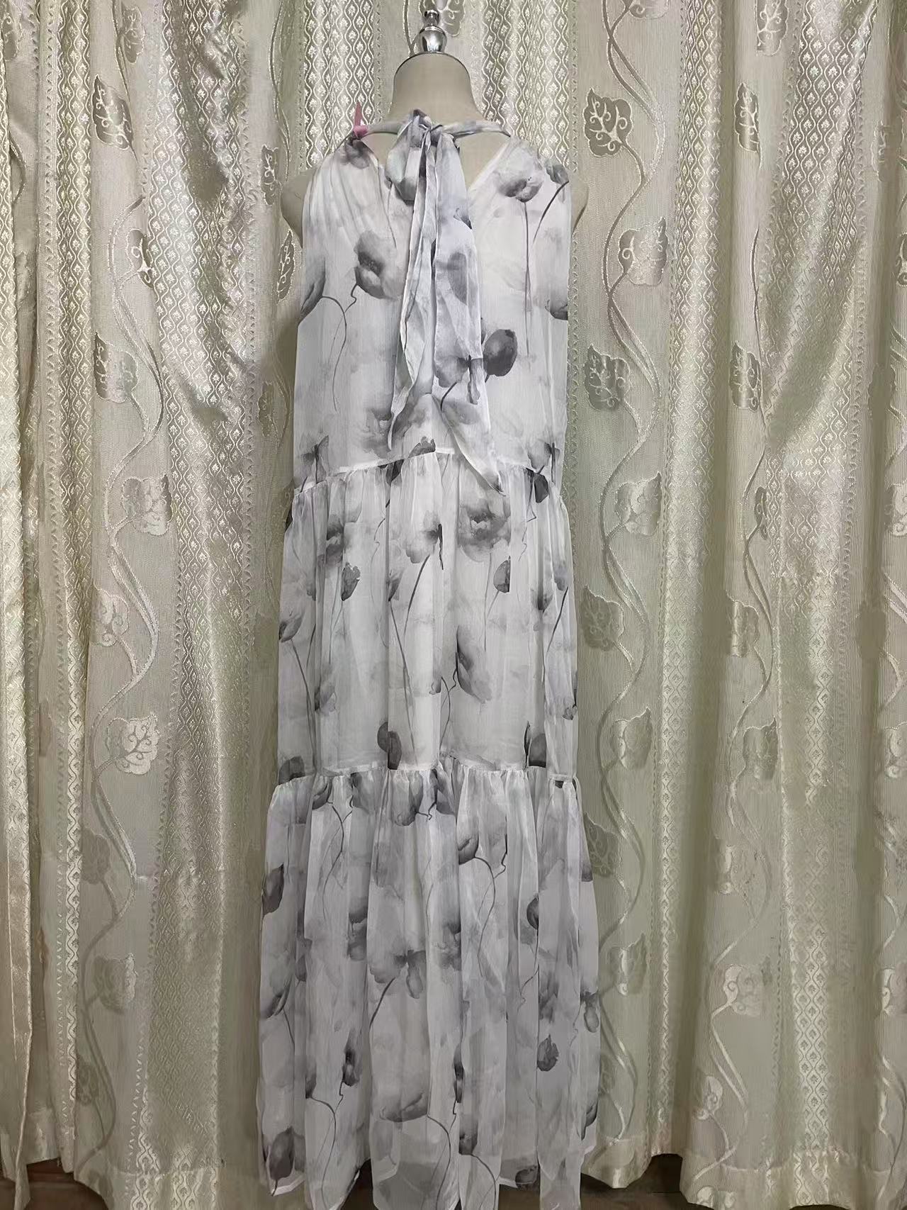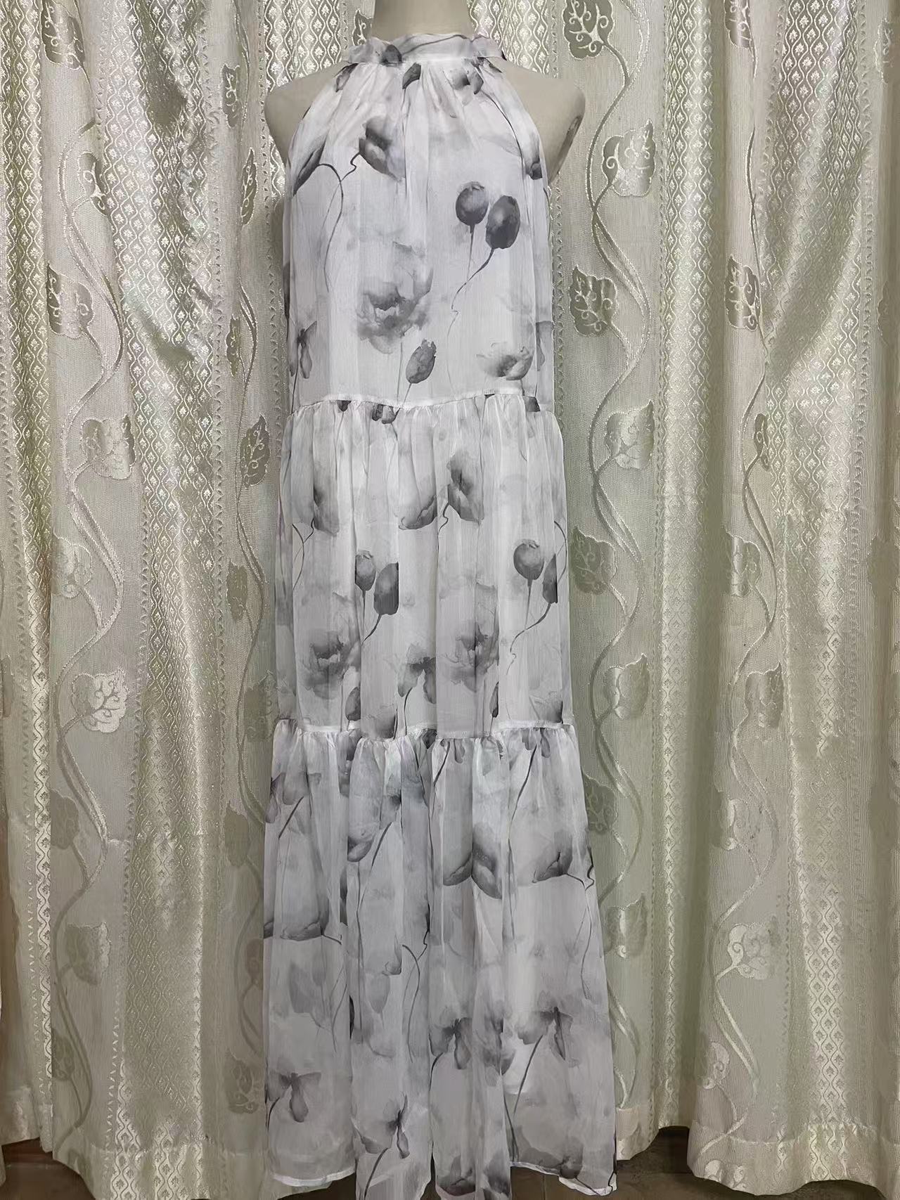 Churan의 같은 스타일 프렌치 프린트 민소매 홀터넥 드레스 여성 여름 기질 휴가 스타일 꽃무늬 조끼 롱 스커트