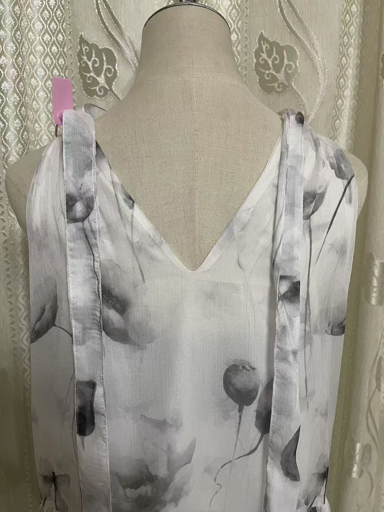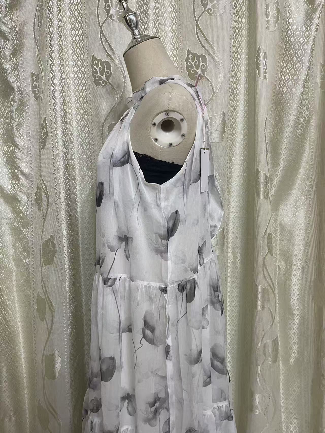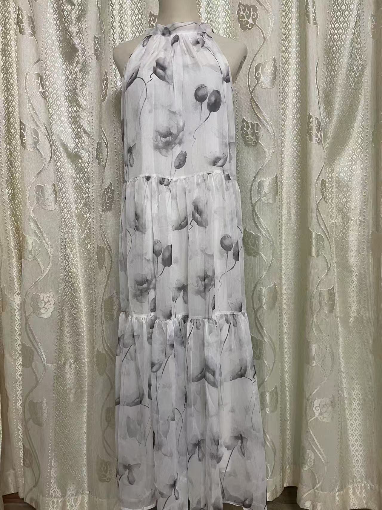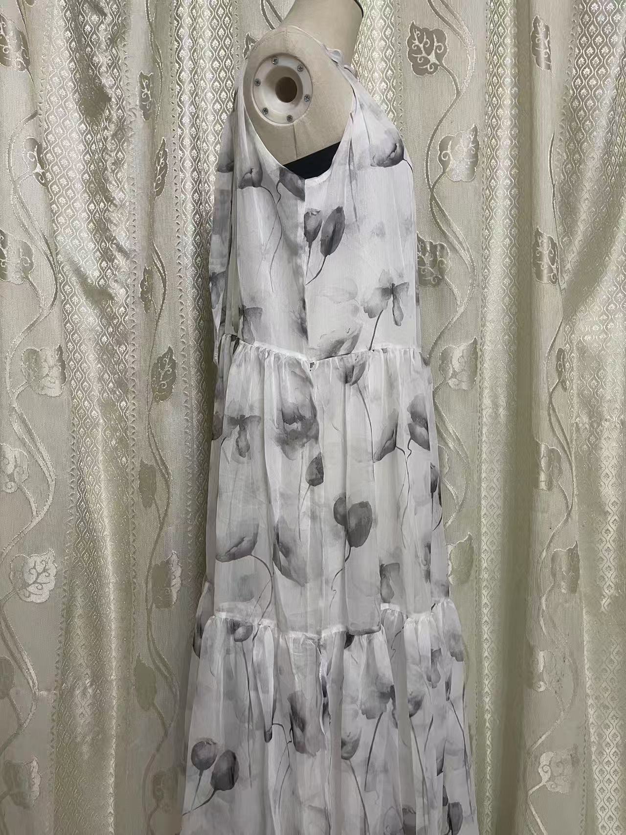 Churan의 같은 스타일 프렌치 프린트 민소매 홀터넥 드레스 여성 여름 기질 휴가 스타일 꽃무늬 조끼 롱 스커트